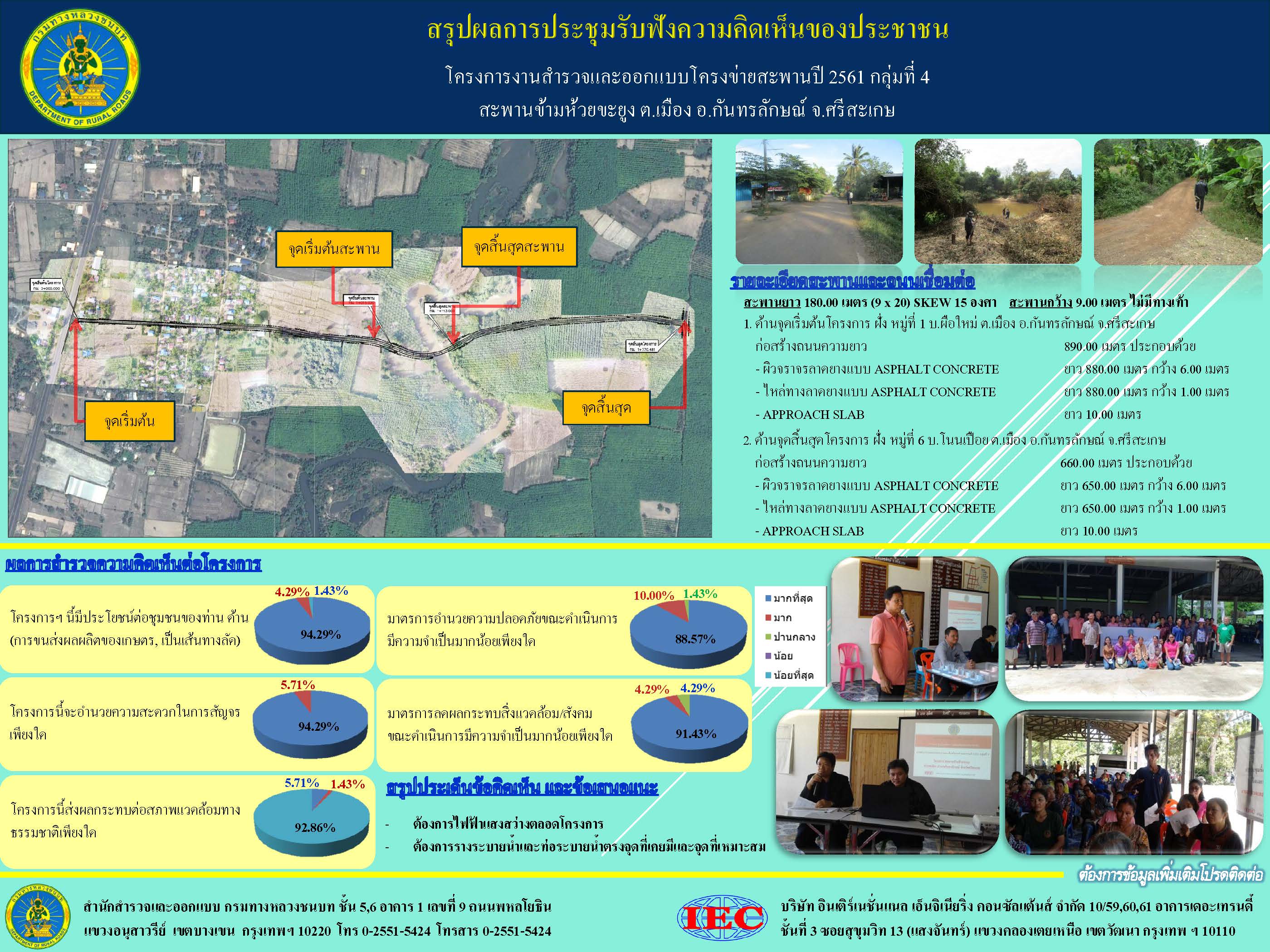 สรุปผลการประชุมรับฟังความคิดเห็นของประชาชน โครงการการสำรวจและออกแบบโครงข่ายสะพานปี 2561 กลุ่มที่ 4 สะพานข้ามห้วยขะยูง อ.กันทรลักษณ์ จ.ศรีสะเกษ