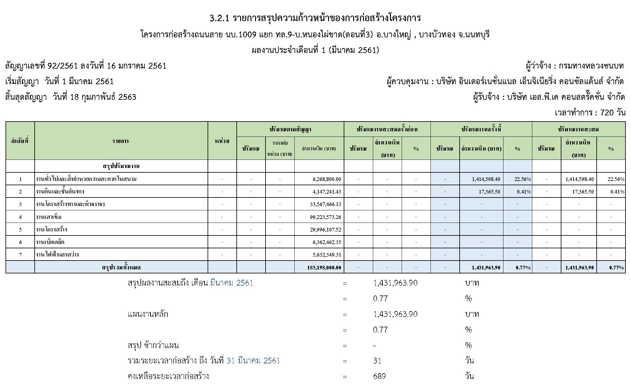 - คงเหลือระยะเวลาดำเนินการก่อสร้าง : 689 วัน