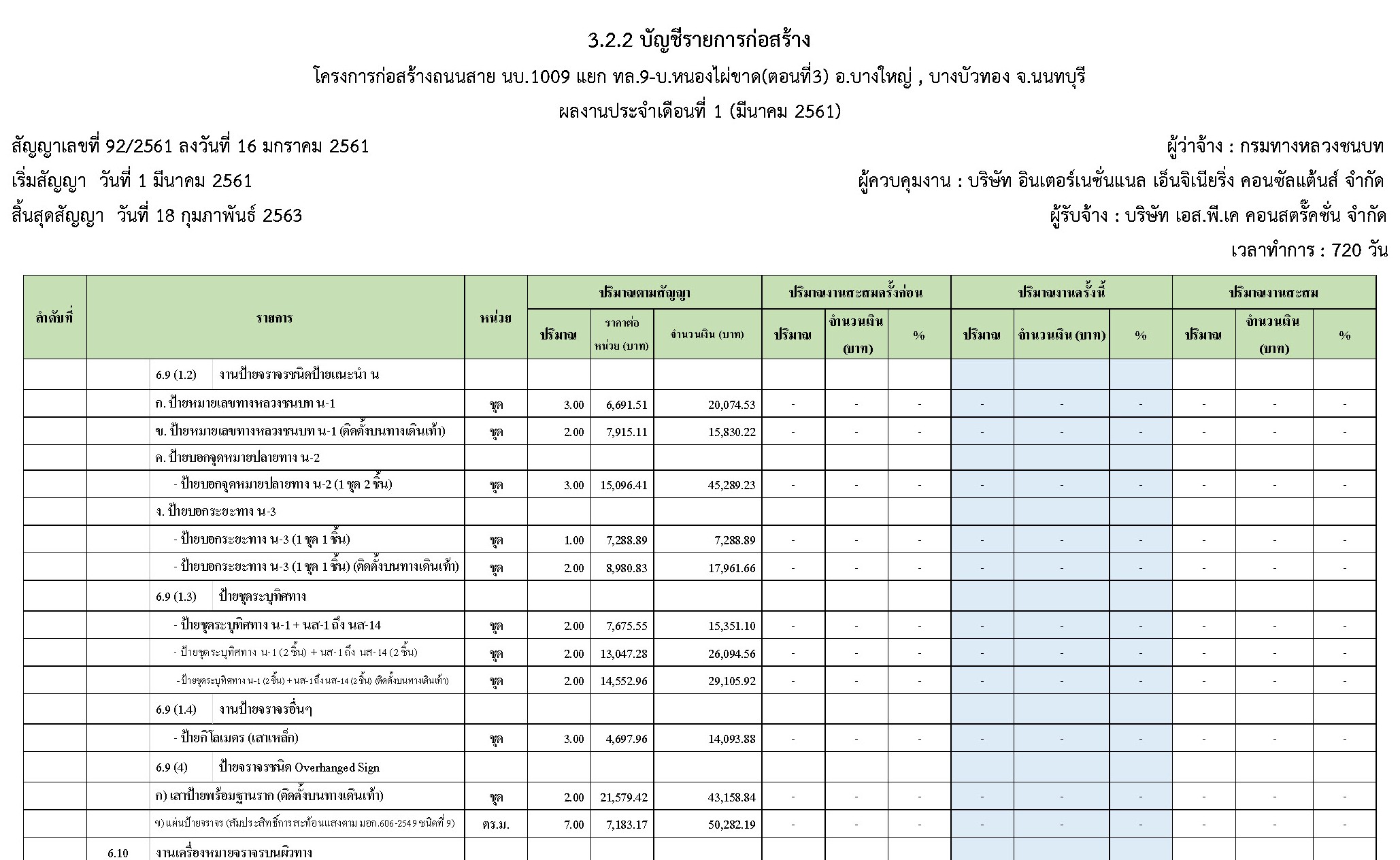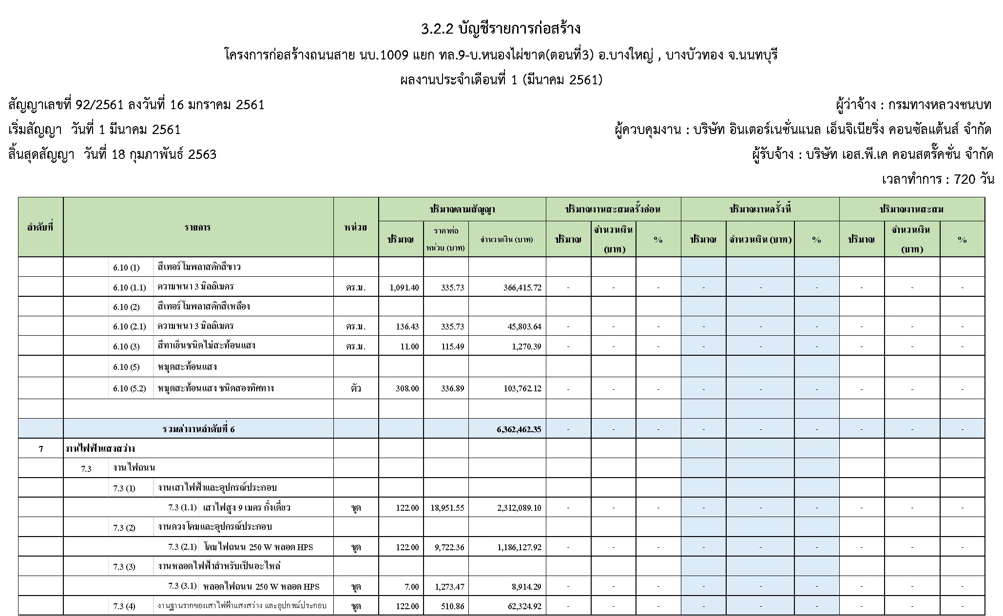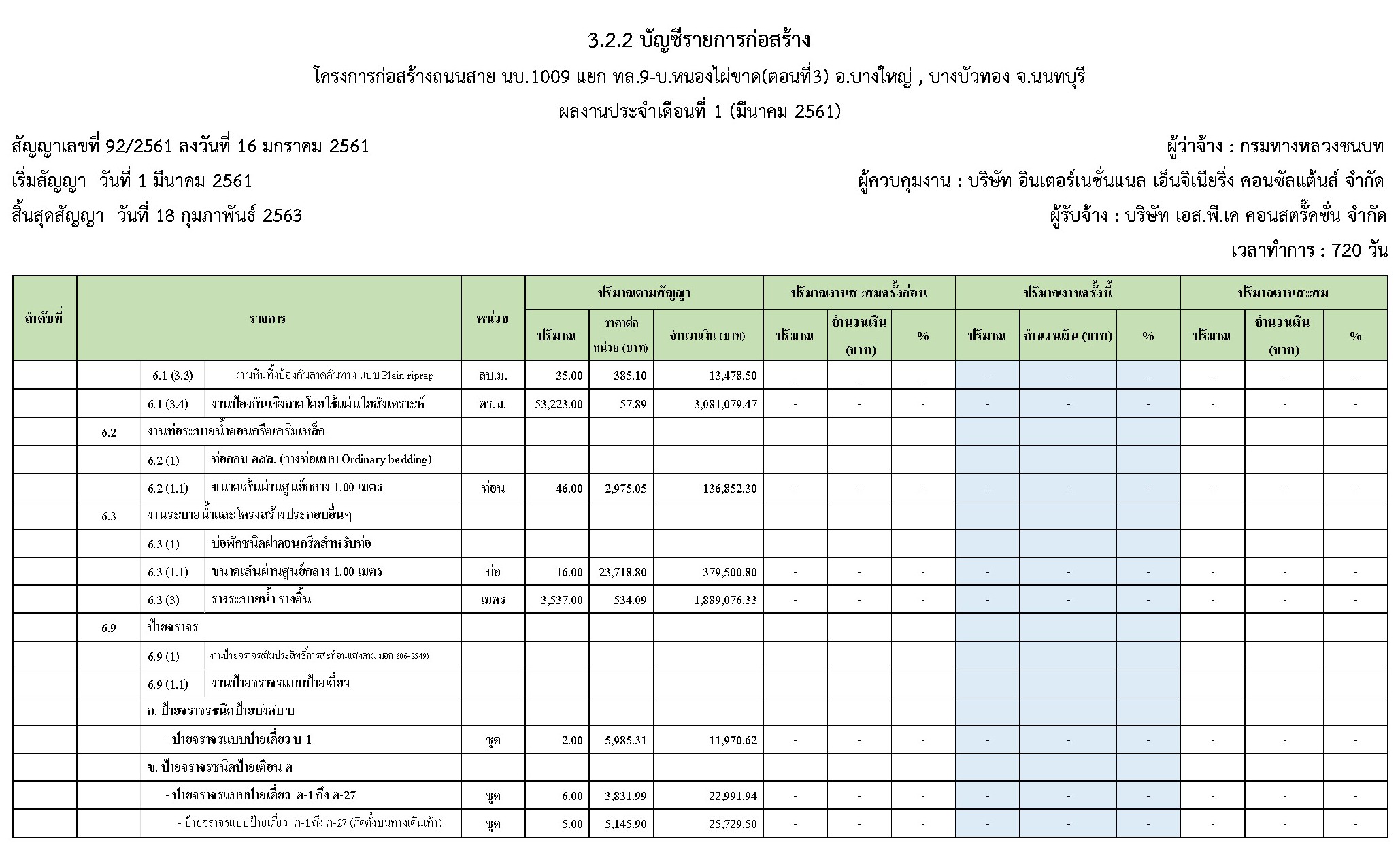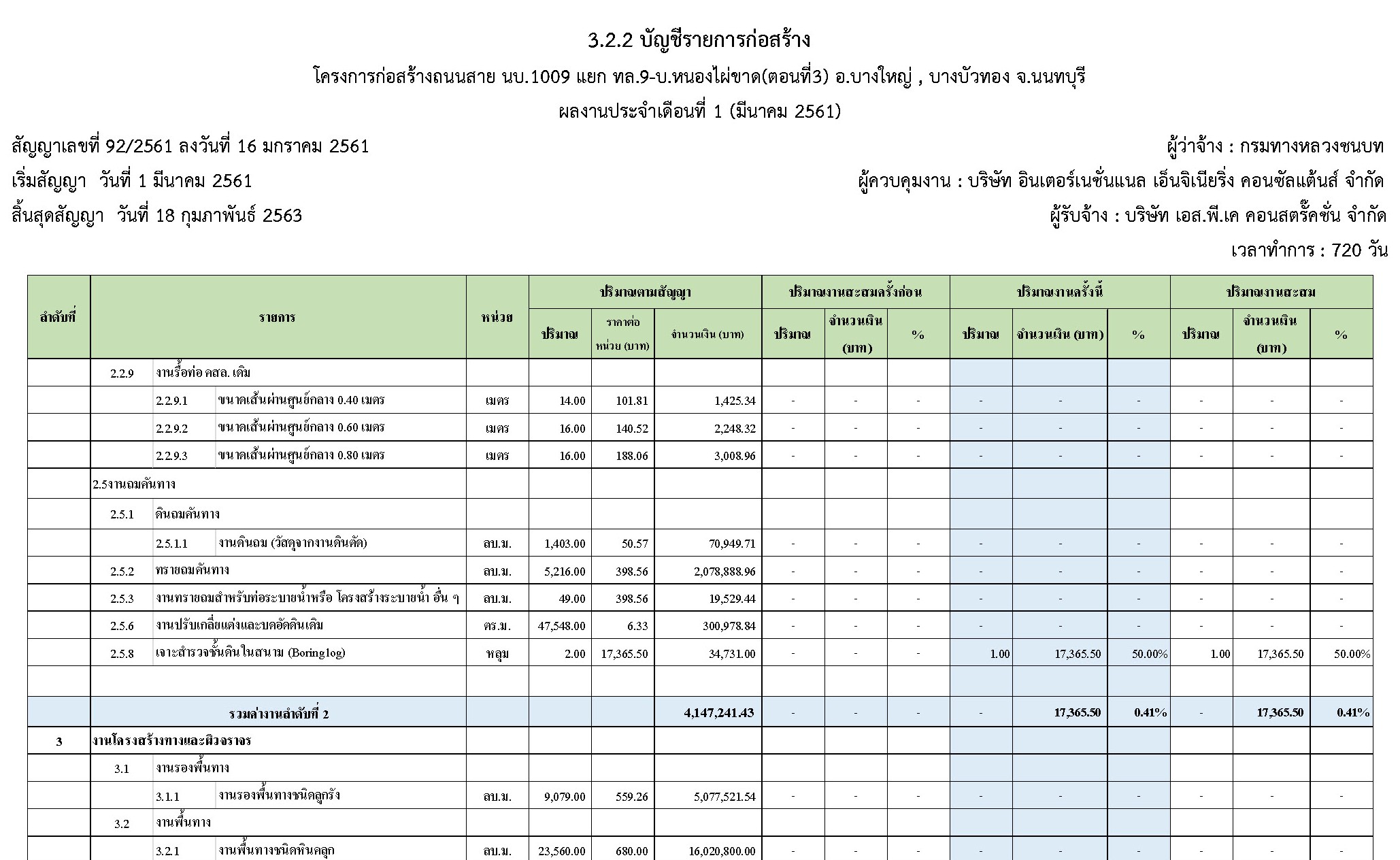 ในระหว่างวันที่ 1 มีนาคม 2561 ถึงวันที่ 31 มีนาคม 2561 ผู้รับจ้างได้ดำเนินงานในส่วนต่างๆดังนี้