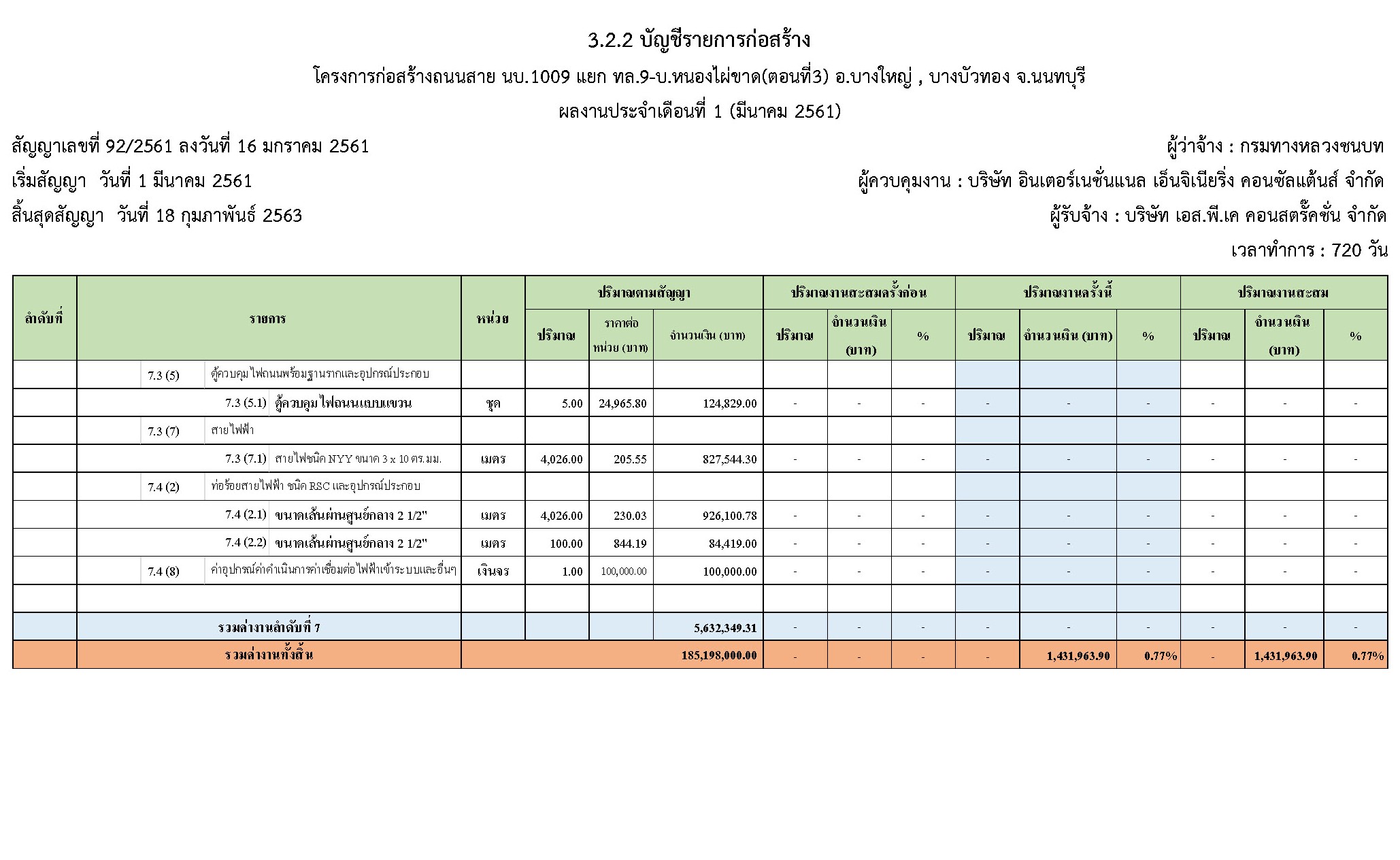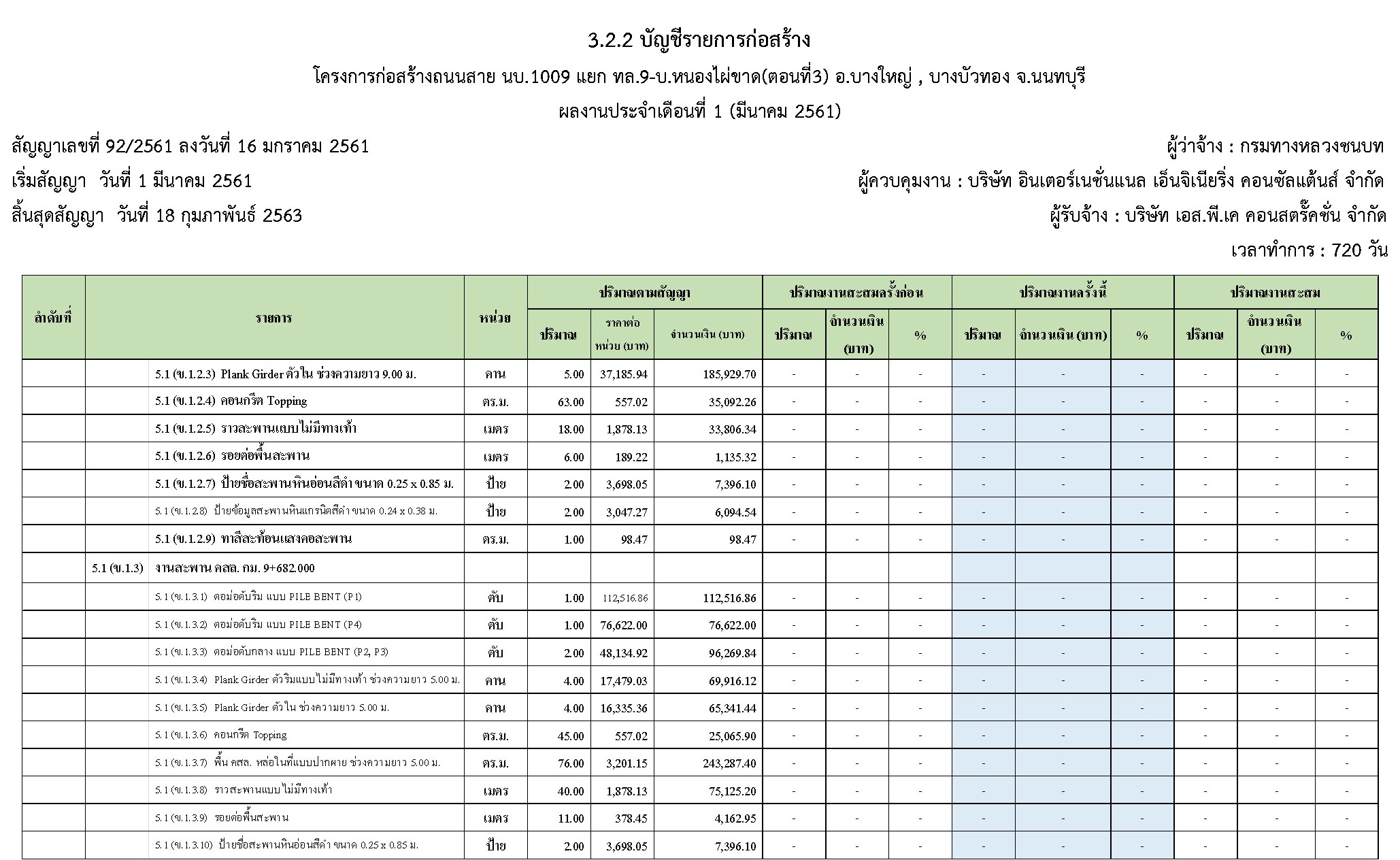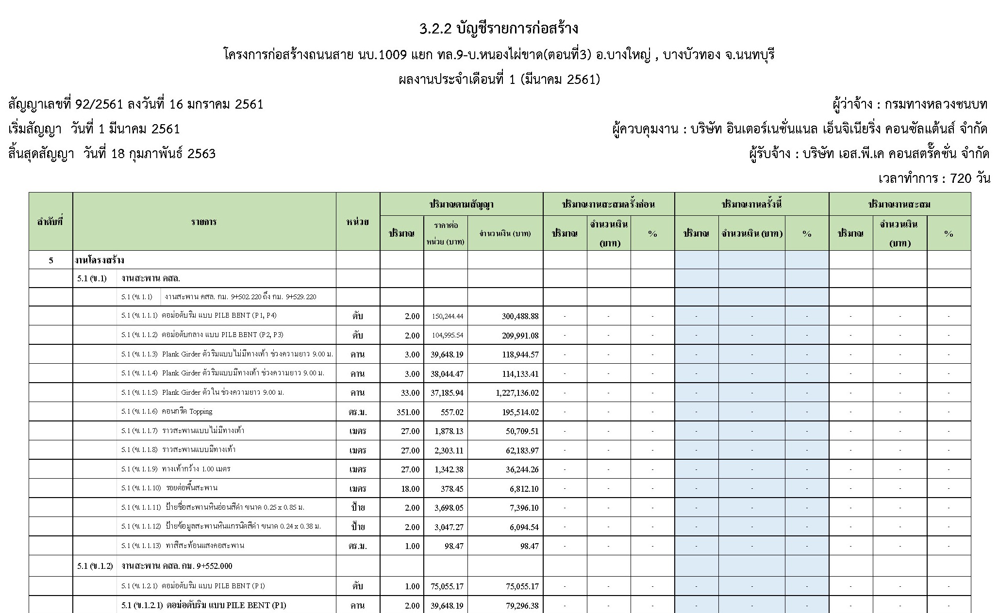- ระยะเวลาก่อสร้างตามสัญญา : 720 วัน
