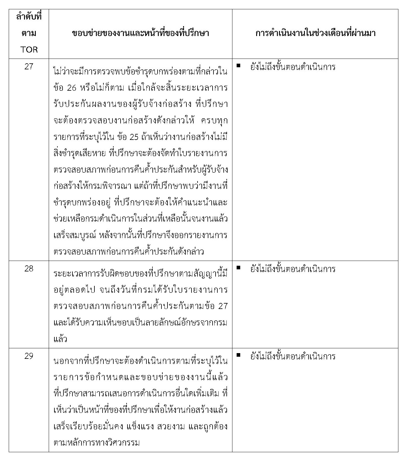 - จัดทำรายงานการปฏิบัติการของที่ปรึกษา ประจำเดือนตุลาคม 2561