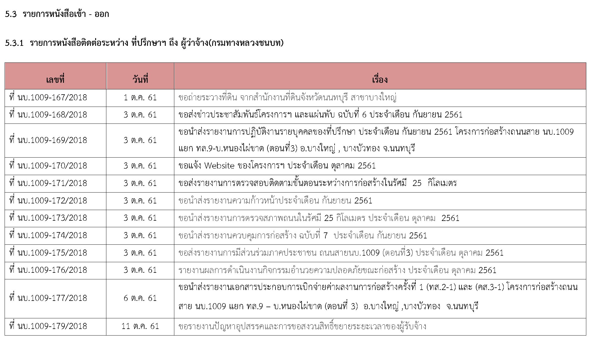 - จัดทำรายงานการควบคุมงานก่อสร้าง ประจำเดือนตุลาคม 2561