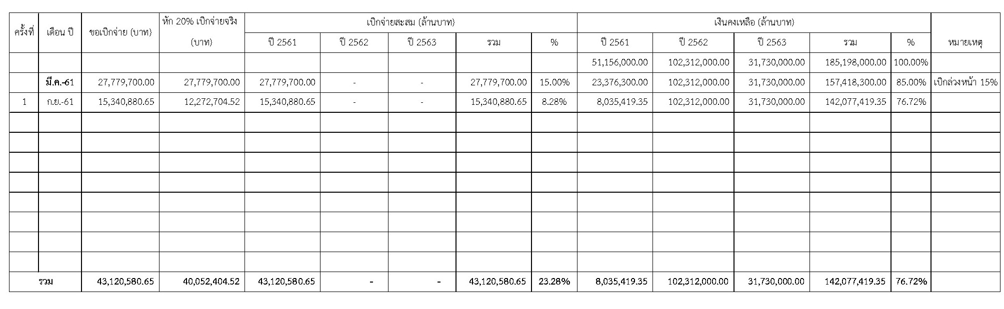 งบประมาณก่อสร้างทั้งหมด 185,198,000.-บาท ปีงบประมาณ 2561 เป็นเงิน 51,156,000.-บาท ปีงบประมาณ 2562 เป็นเงิน 102,312,000.-บาท ปีงบประมาณ 2563 เป็นเงิน31,730,000.-บาท