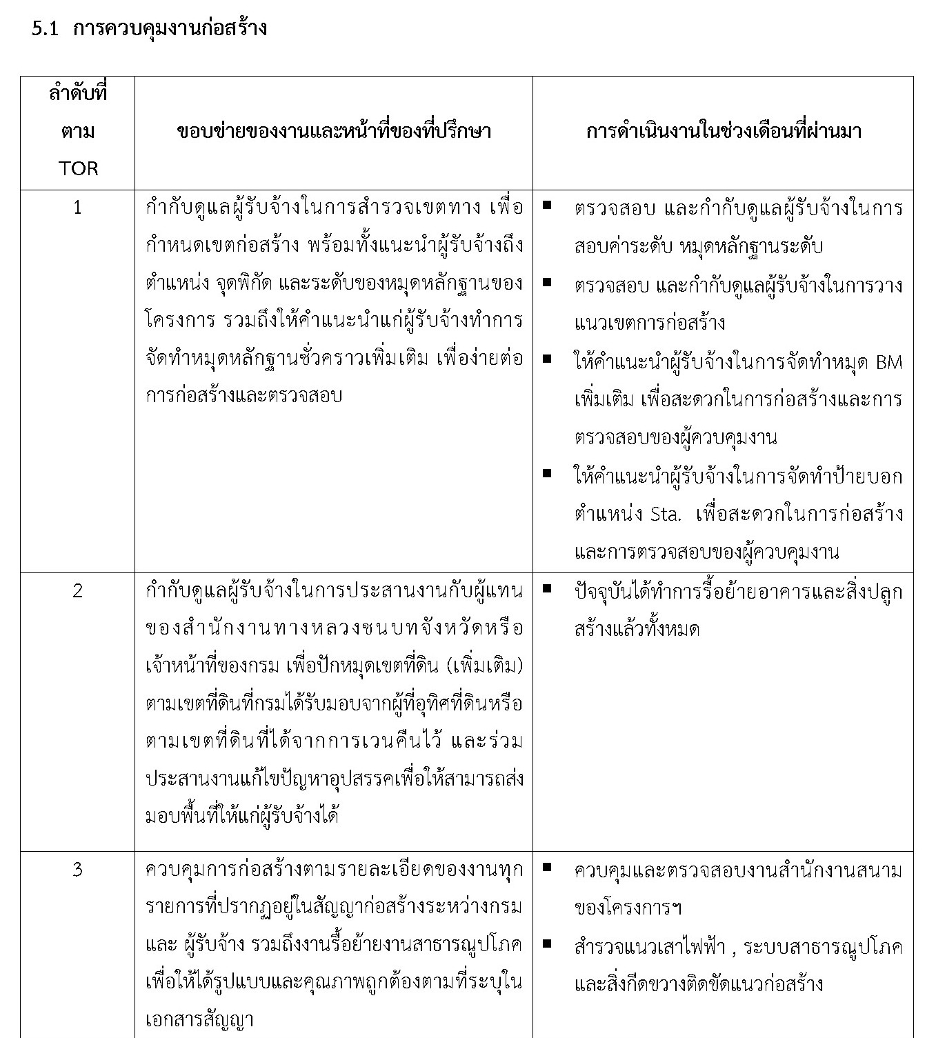 บทที่ 5 รายงานการปฏิบัติการของงานที่ปรึกษา