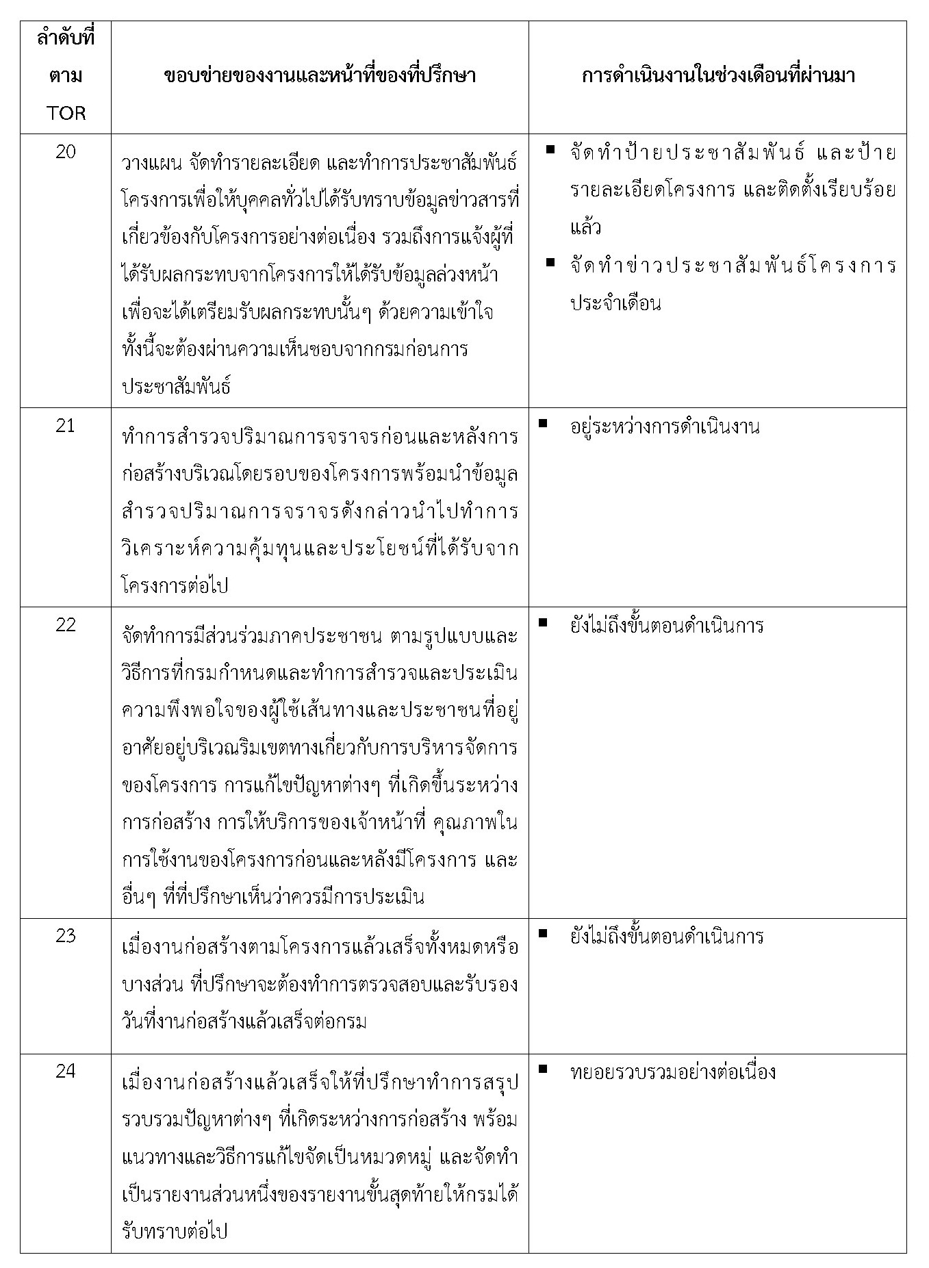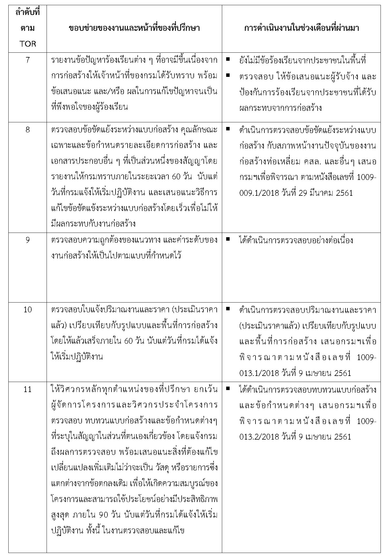 - จัดทำรายงานการปฏิบัติการของที่ปรึกษา ประจำเดือนพฤศจิกายน2561