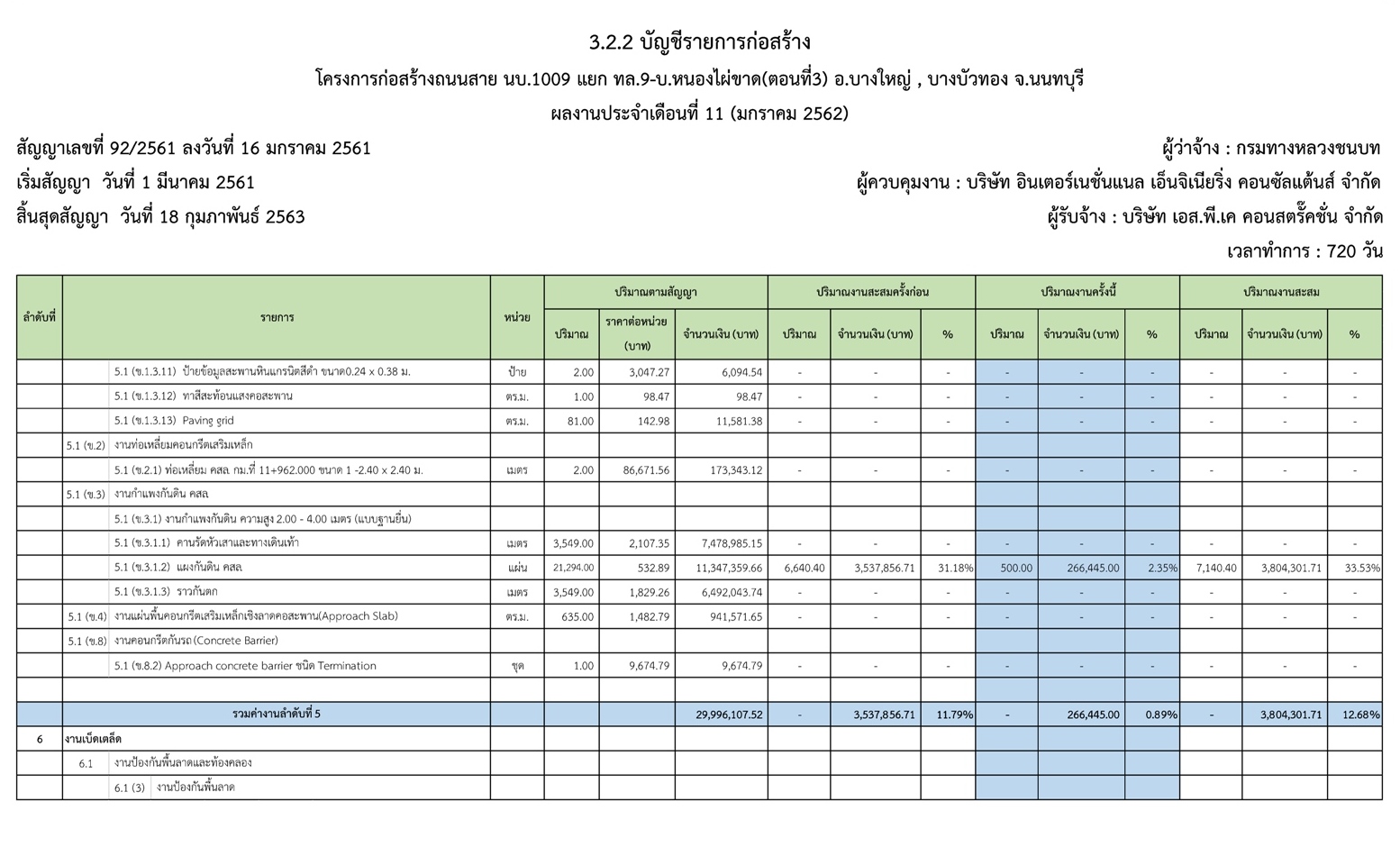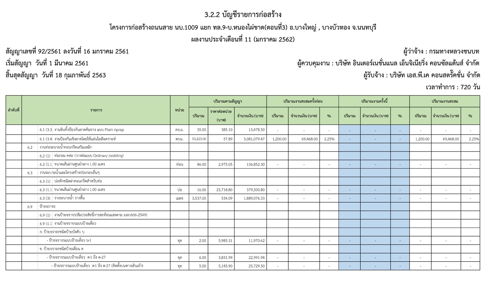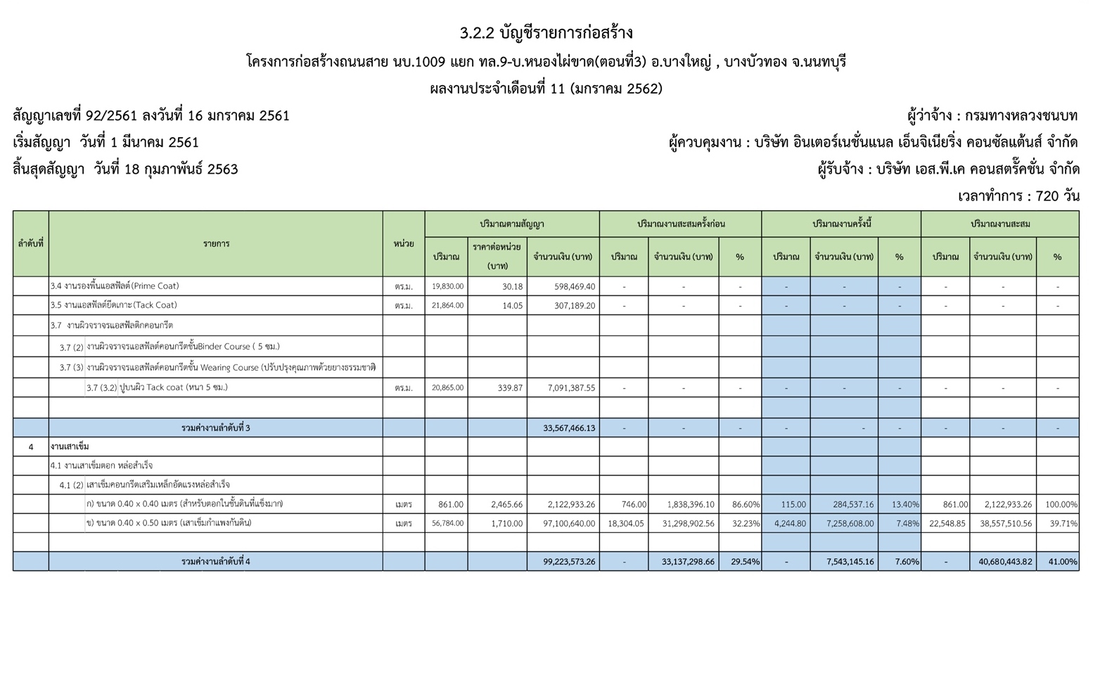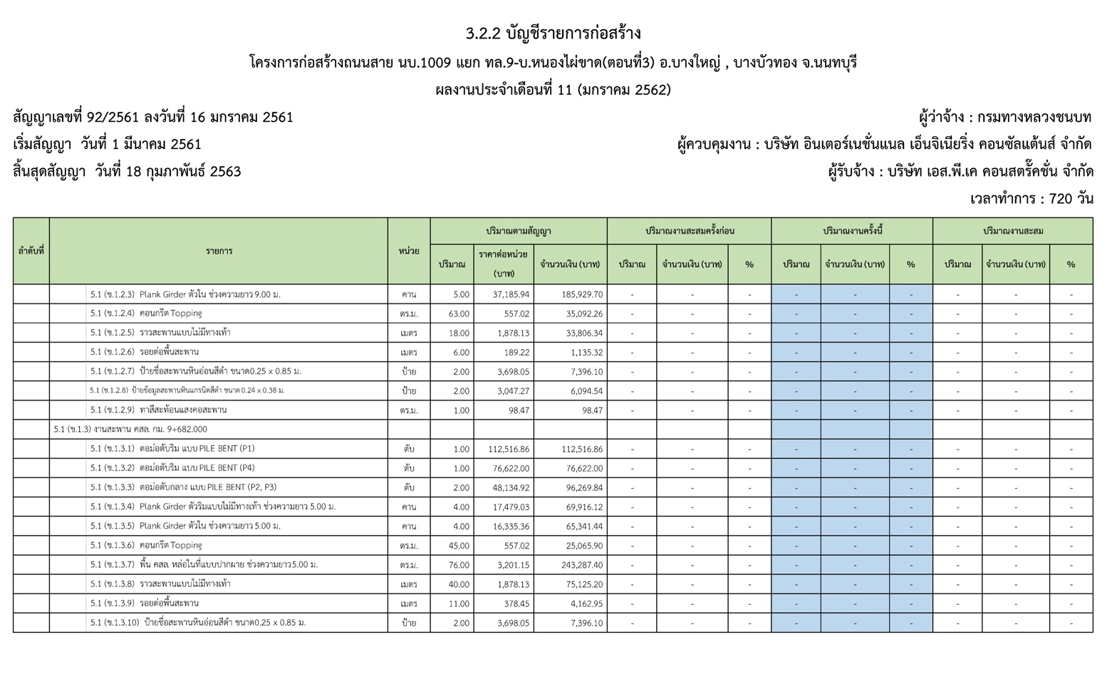 - ระยะเวลาก่อสร้างตามสัญญา : 720 วัน