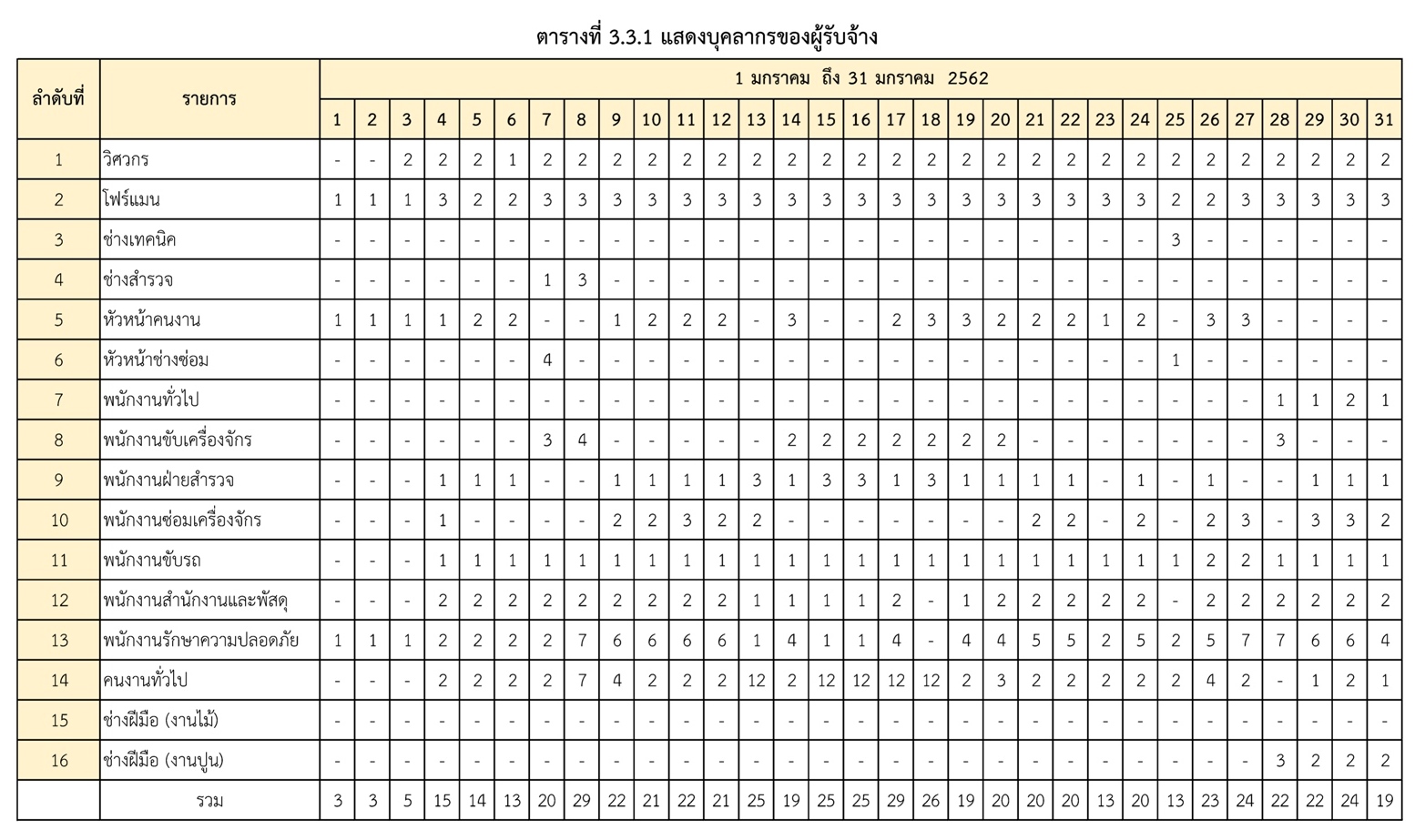3.3 รายงานบุคลากรและเครื่องจักร