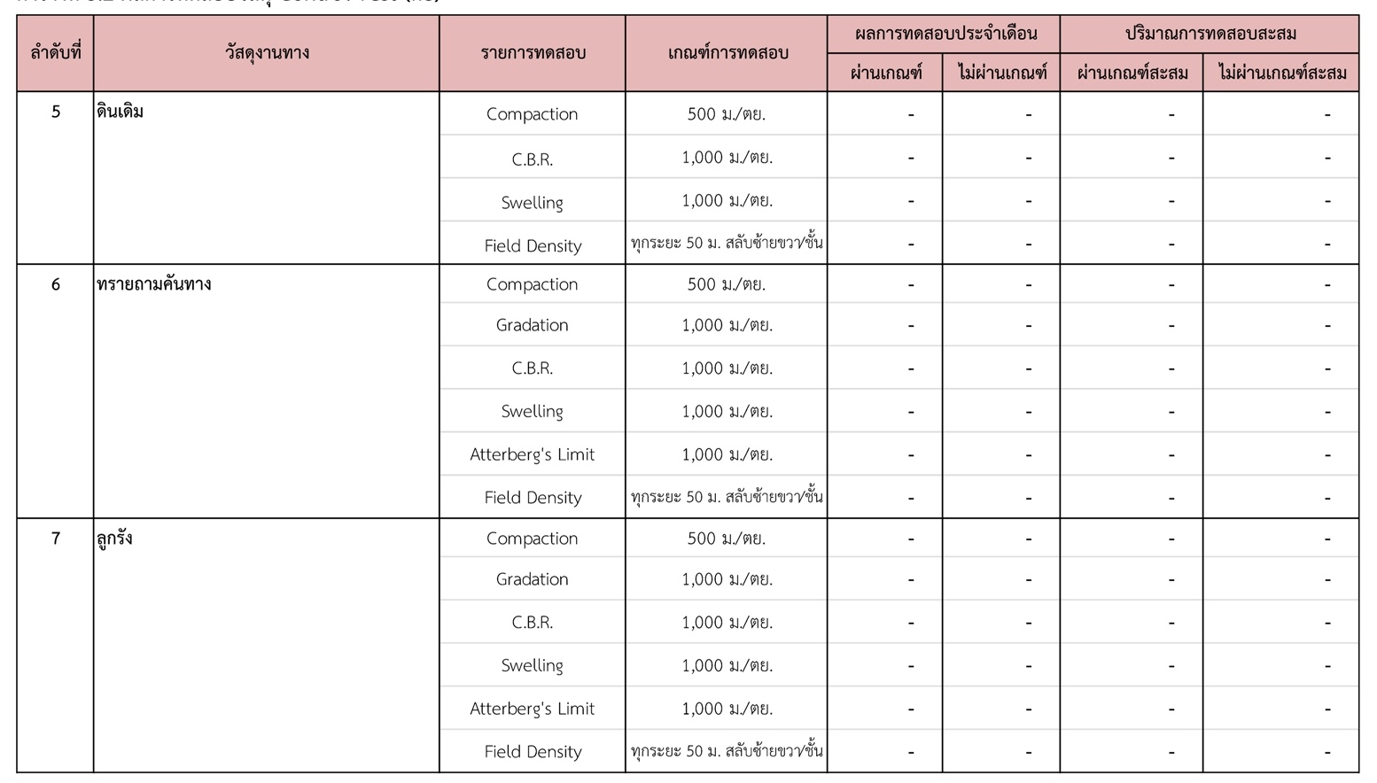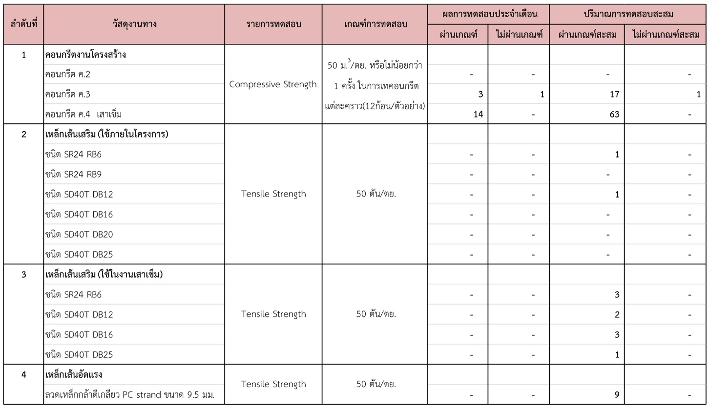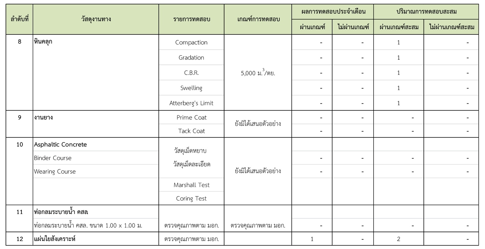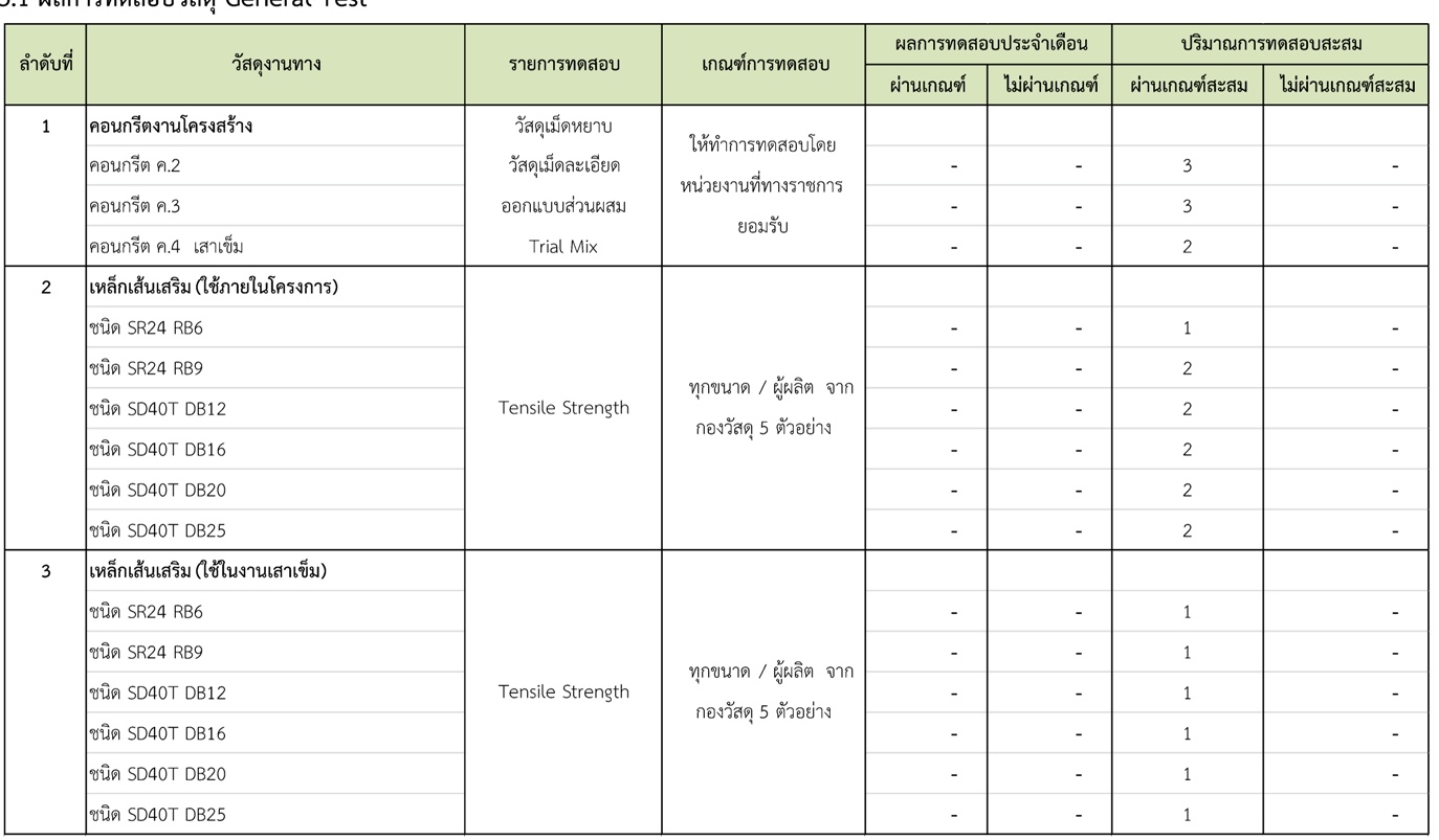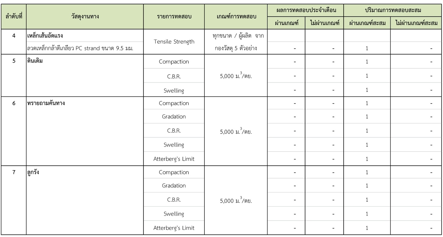 ในช่วงระหว่างวันที่ 1-31 มกราคม 2561 ผู้รับจ้างได้จัดส่งวัสดุเพื่อทำการทดสอบ