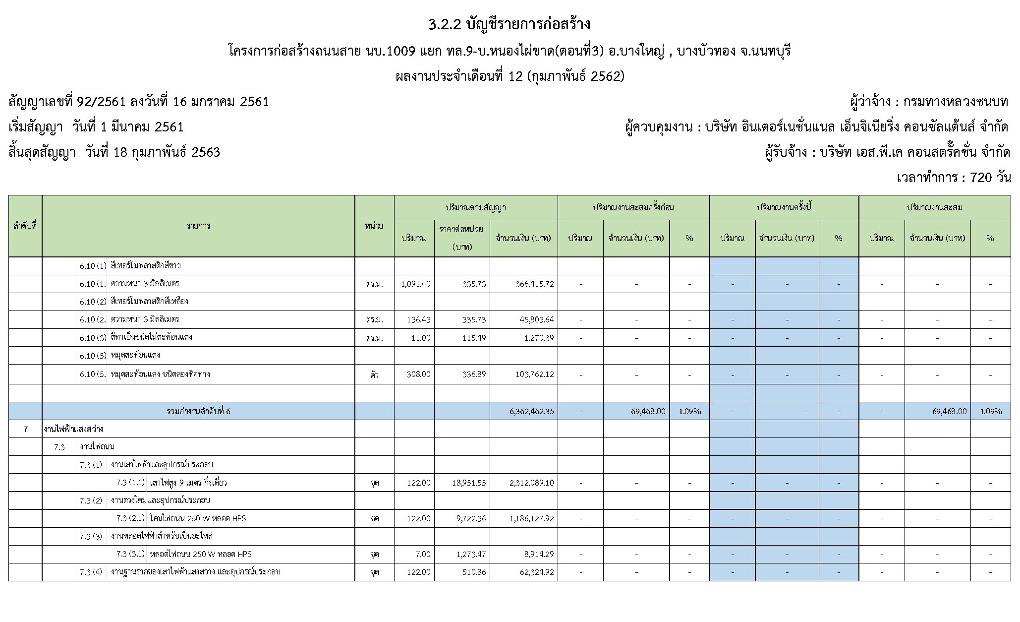 ในระหว่างวันที่ 1 กุมภาพันธ์ 2562 ถึง วันที่ 28 กุมภาพันธ์ 2562 ผู้รับจ้างได้ดำเนินงานในส่วนต่างๆดังนี้