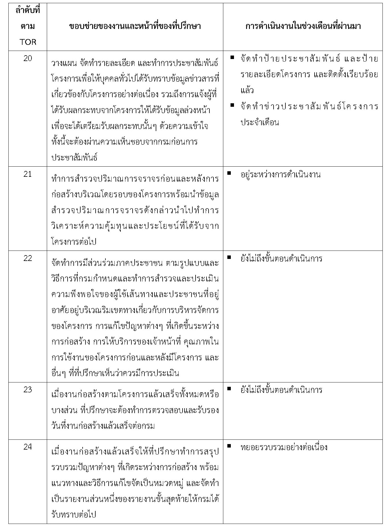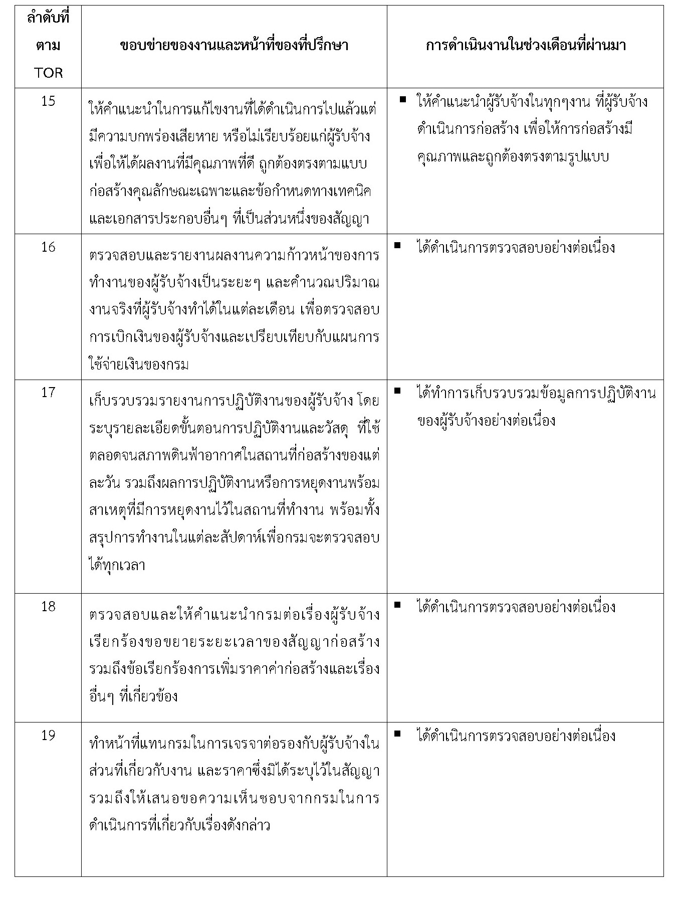 - จัดทำรายงานการปฏิบัติการของที่ปรึกษา ประจำเดือนมีนาคม 2562