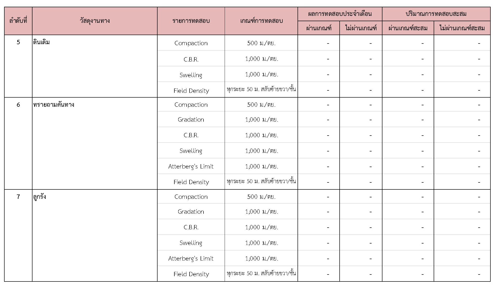 ในช่วงระหว่างวันที่ 1-31 มีนาคม 2562 ผู้รับจ้างได้จัดส่งวัสดุเพื่อทำการทดสอบ