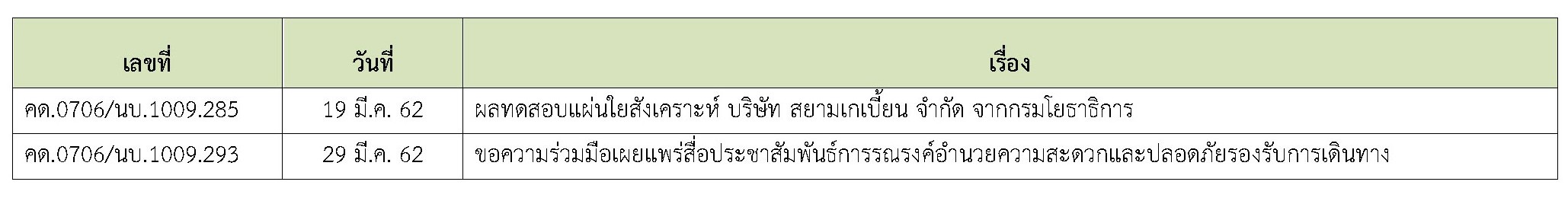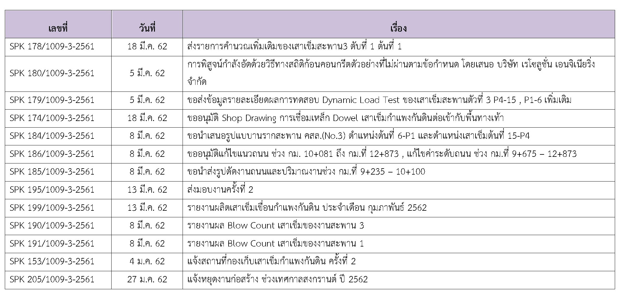 5.3.3 รายการหนังสือติดต่อระหว่าง ผู้ว่าจ้าง(กรมทางหลวงชนบท) ถึง ที่ปรึกษาฯ
