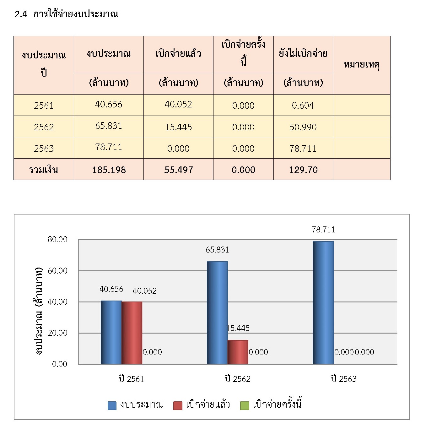 งบประมาณก่อสร้างทั้งหมด 185,198,000.-บาท ปีงบประมาณ 2561 เป็นเงิน 40,656,000 บาท ปีงบประมาณ 2562 เป็นเงิน 65,831,000 บาท ปีงบประมาณ 2563 เป็นเงิน 78,711,000 บาท