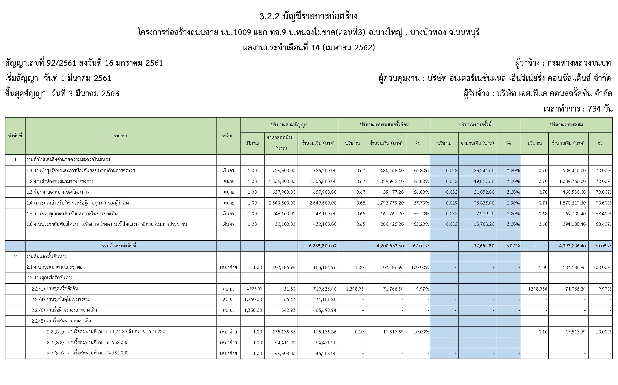 3.2 ความก้าวหน้าของงานแยกตามรายการ