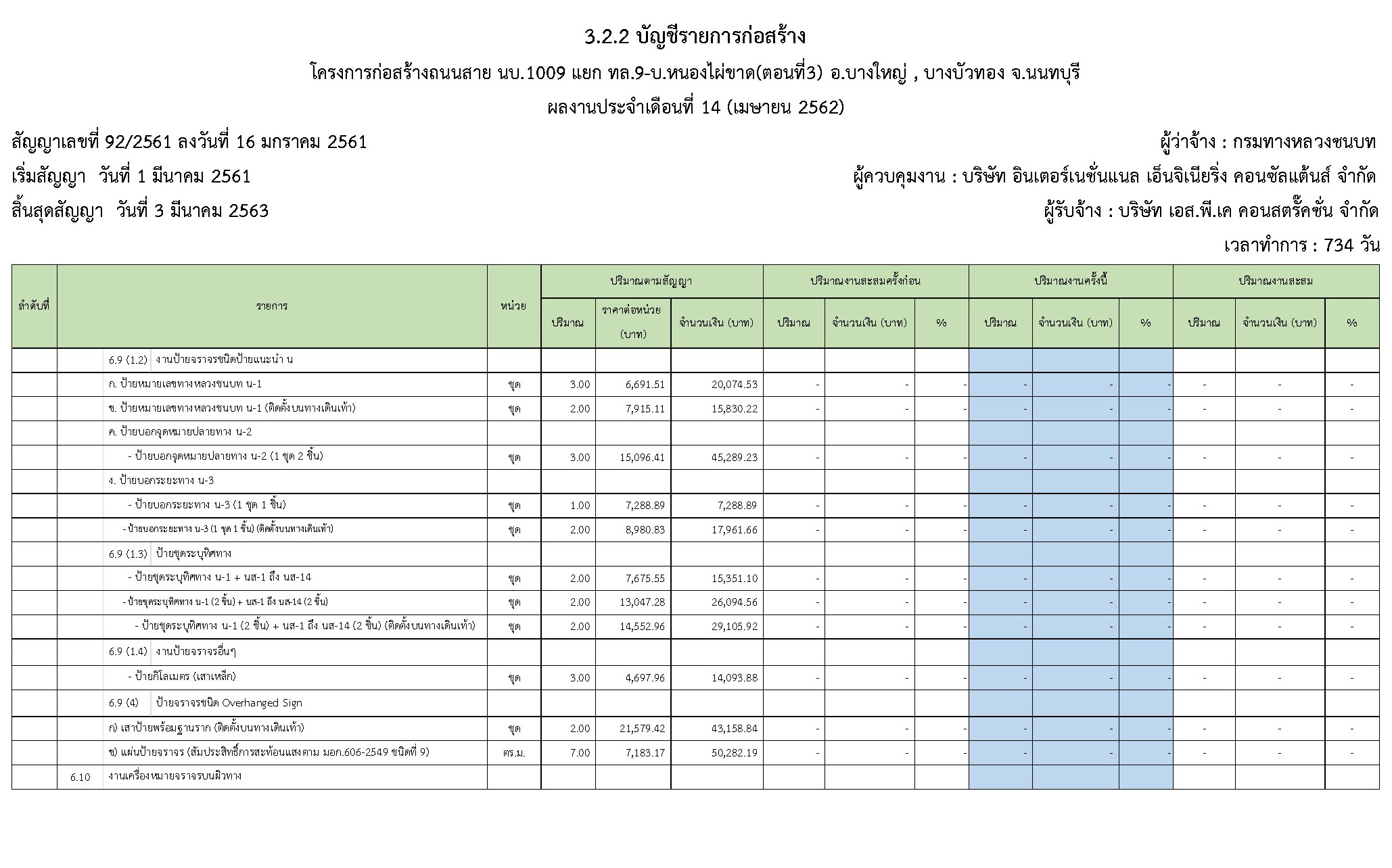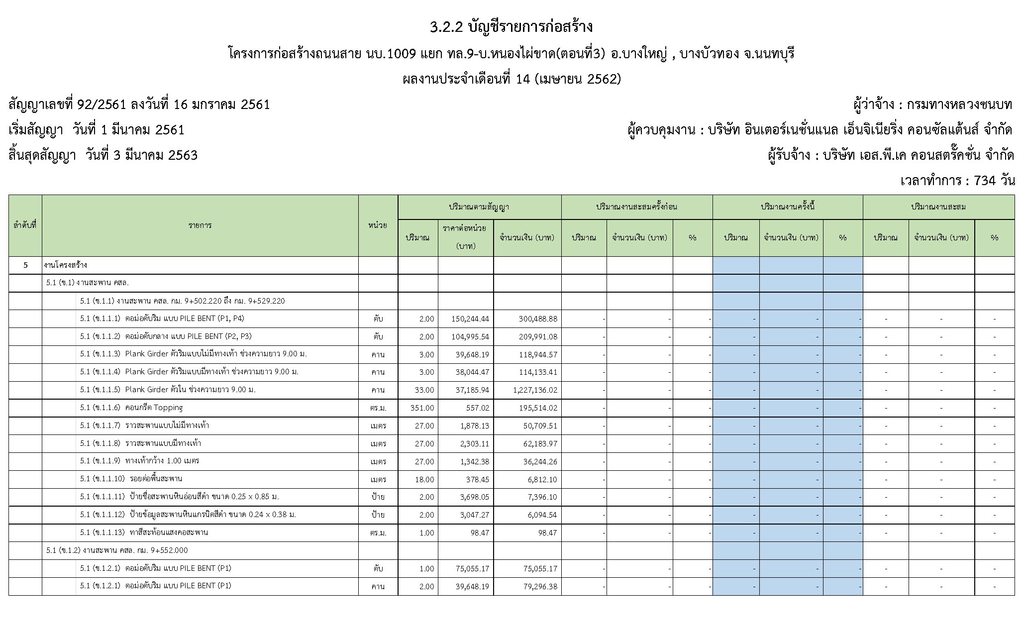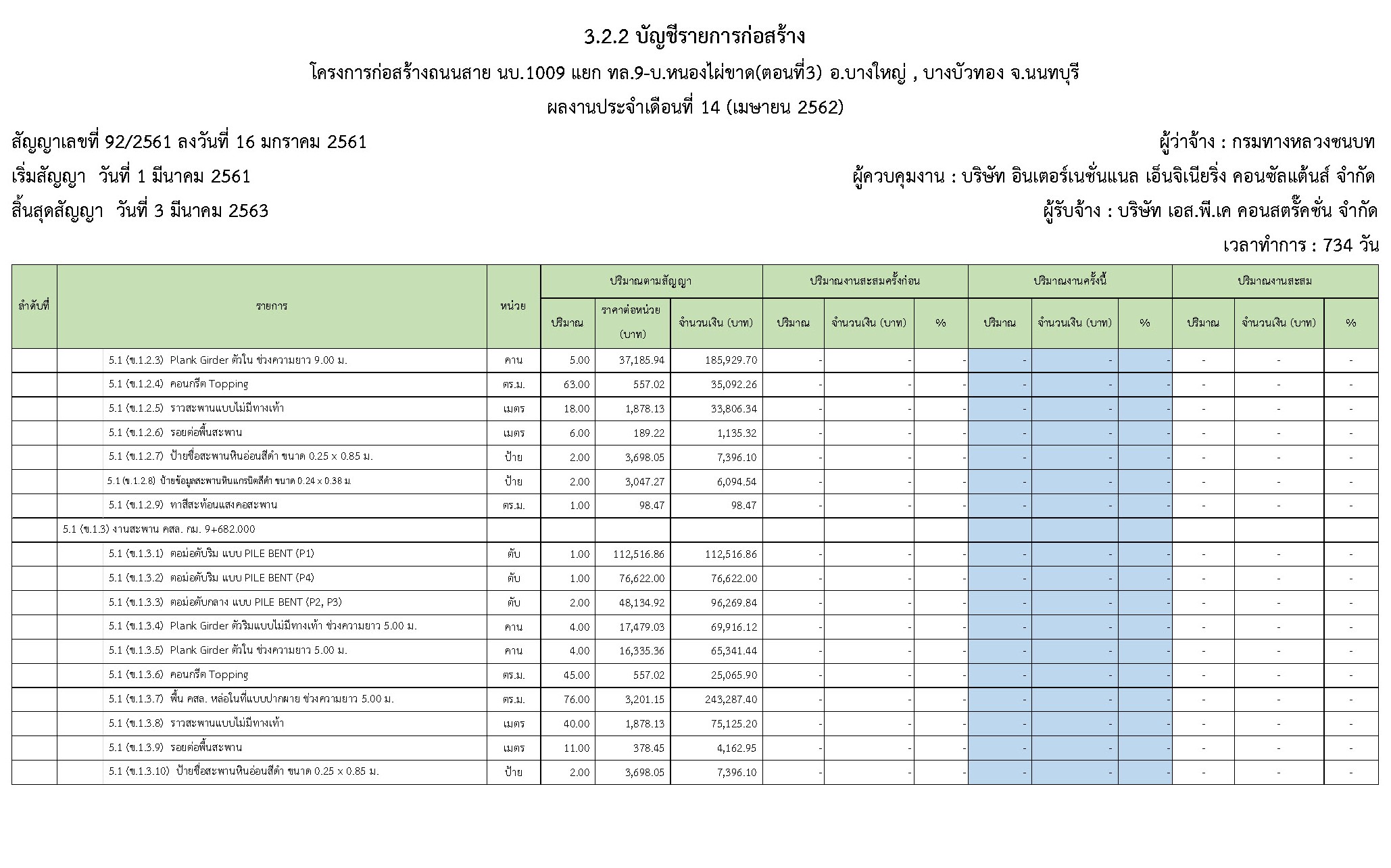 - ระยะเวลาก่อสร้างตามสัญญา : 734 วัน