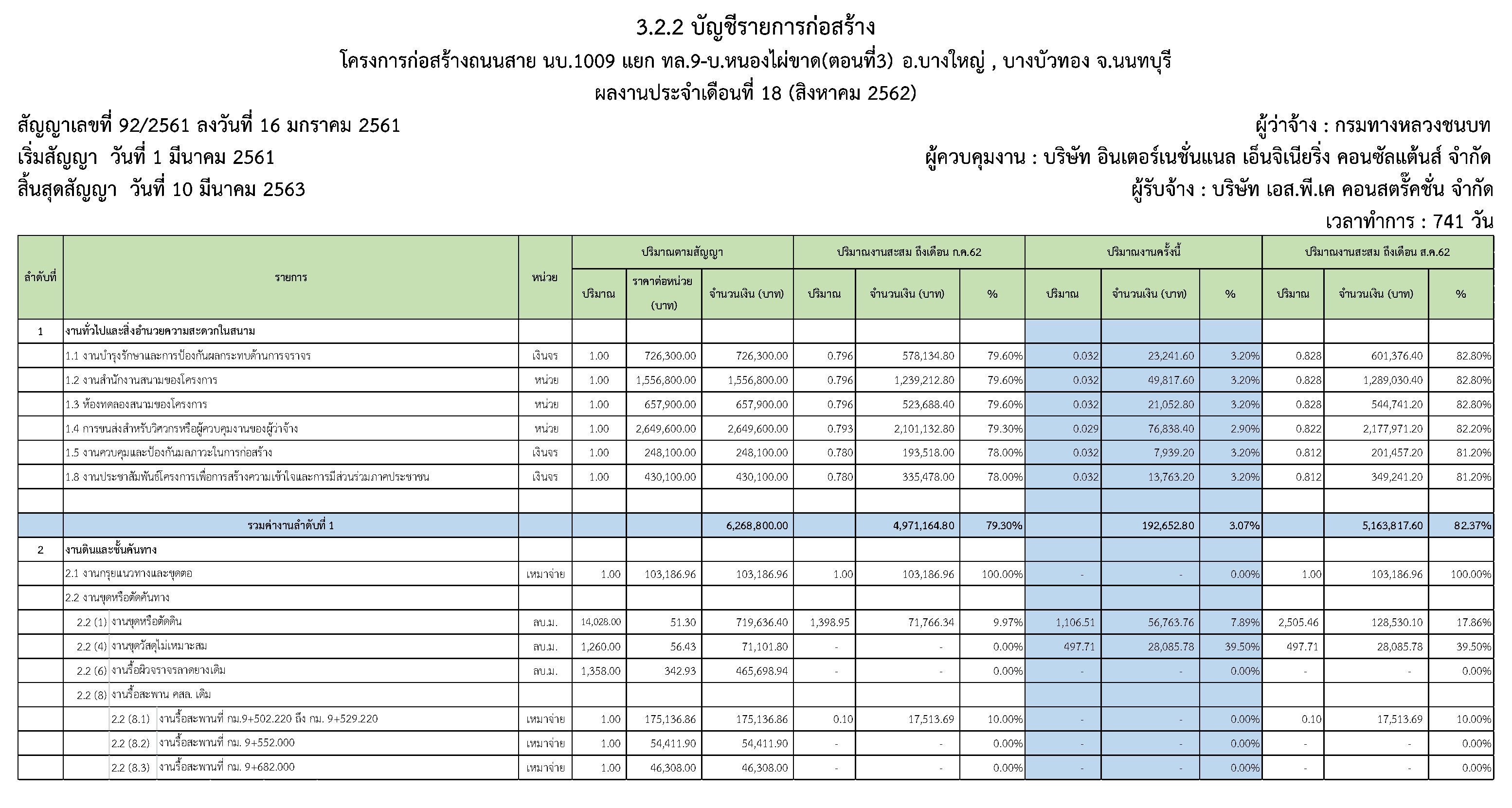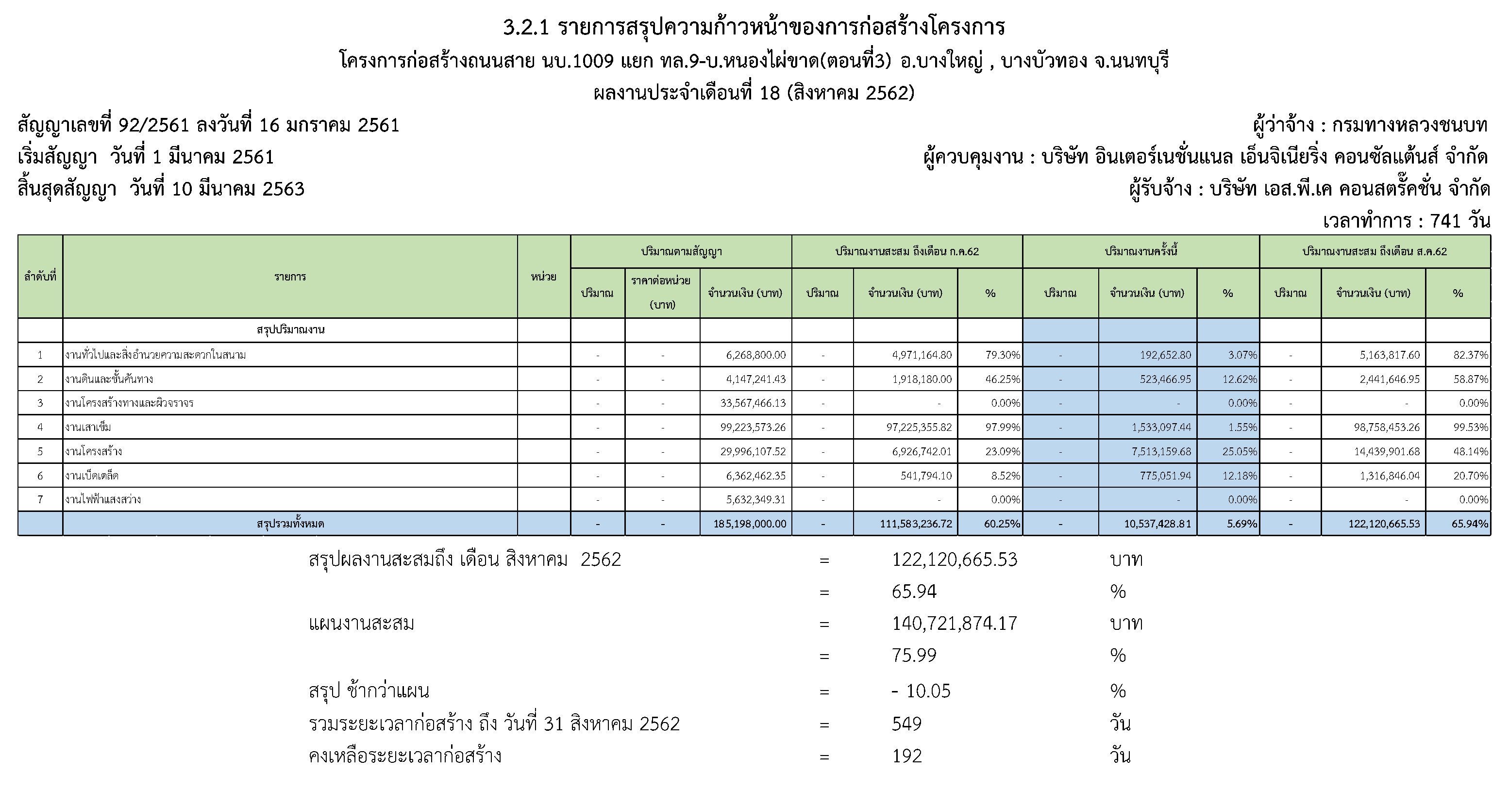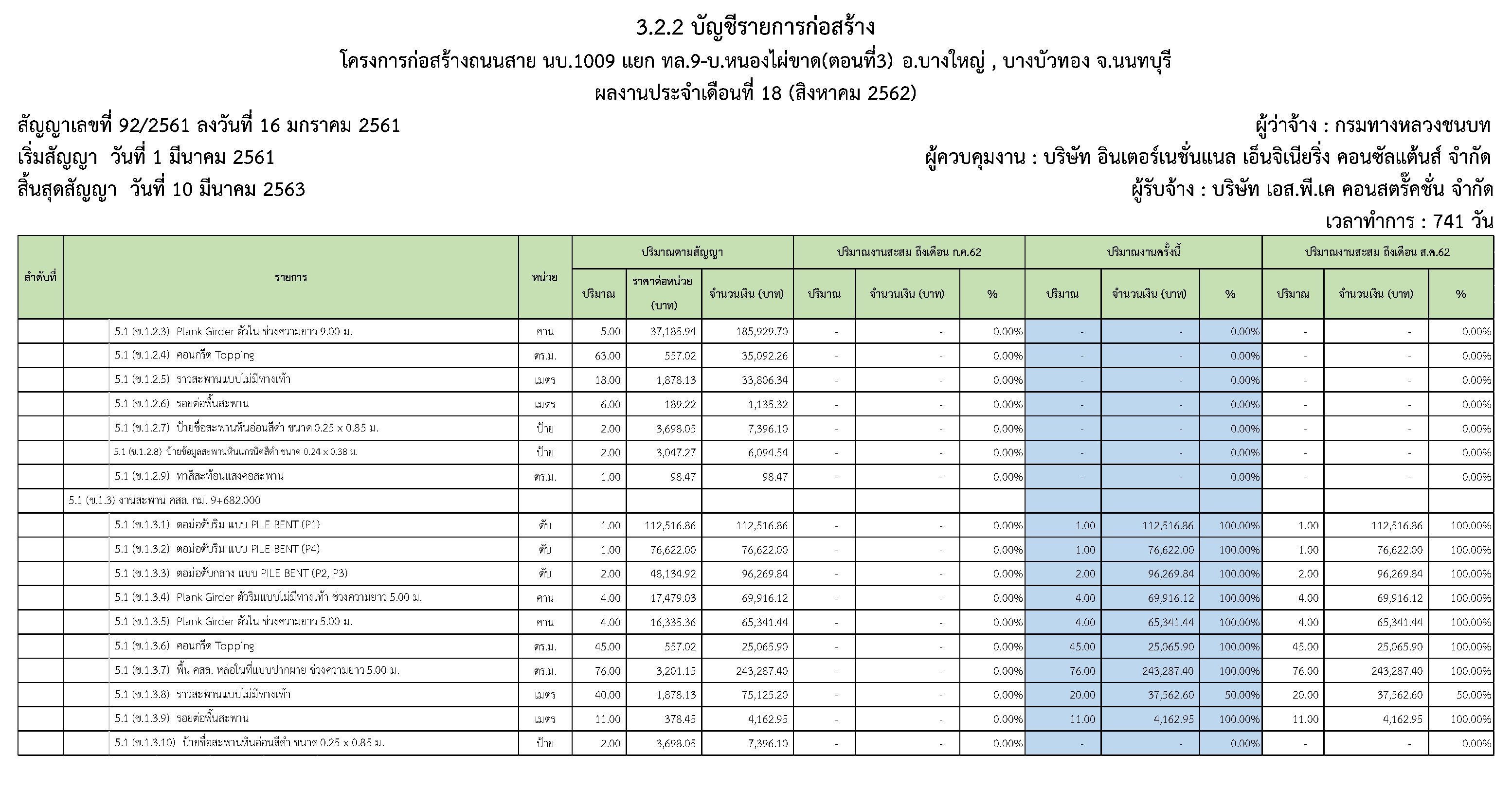 - ผลงานก่อสร้าง ช้า/เร็ว กว่าแผนงาน (-,+) : -0.18 %
