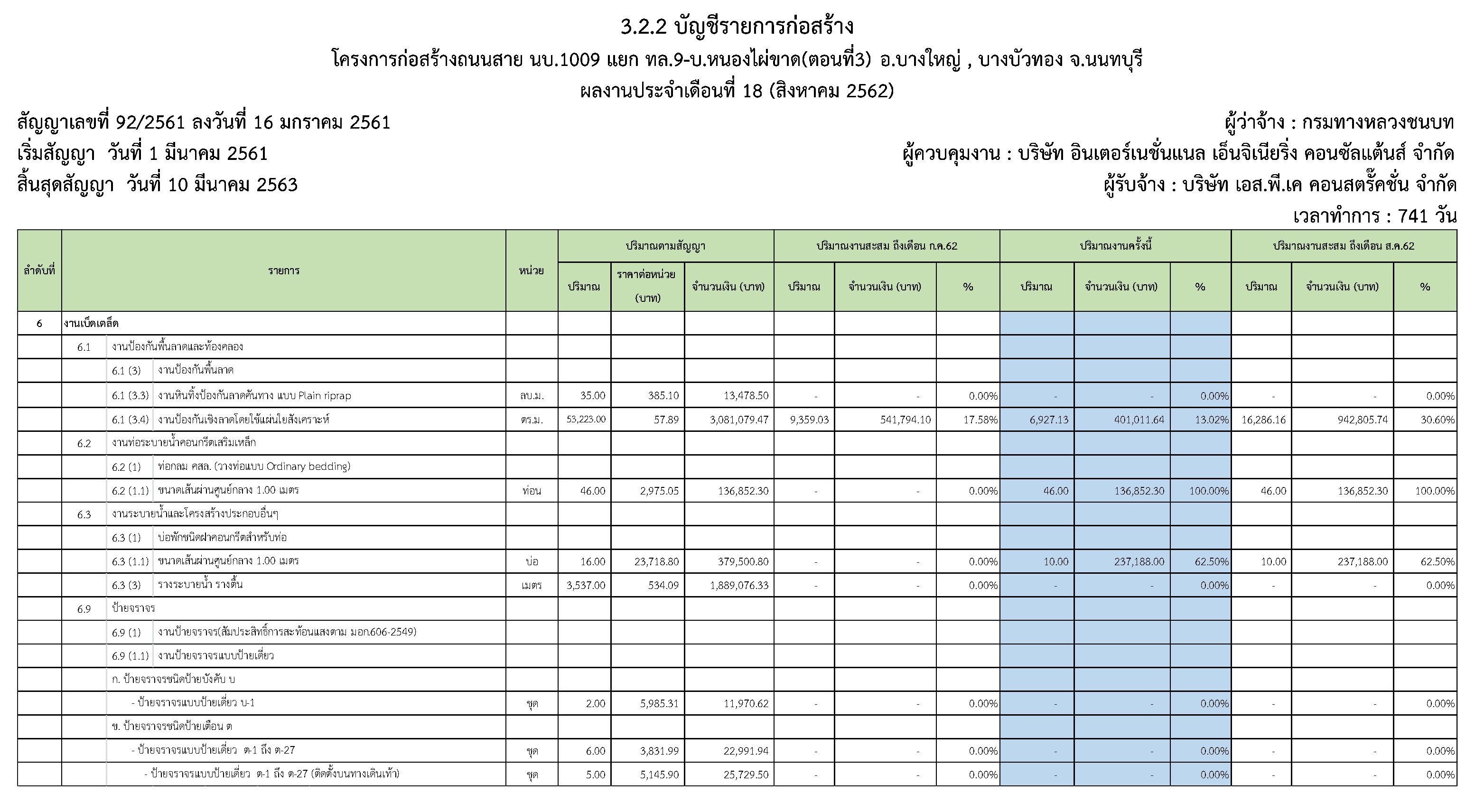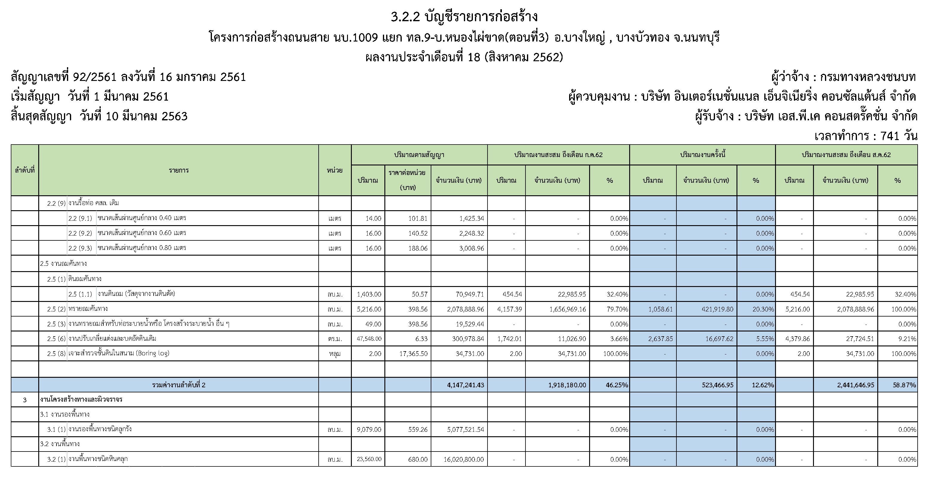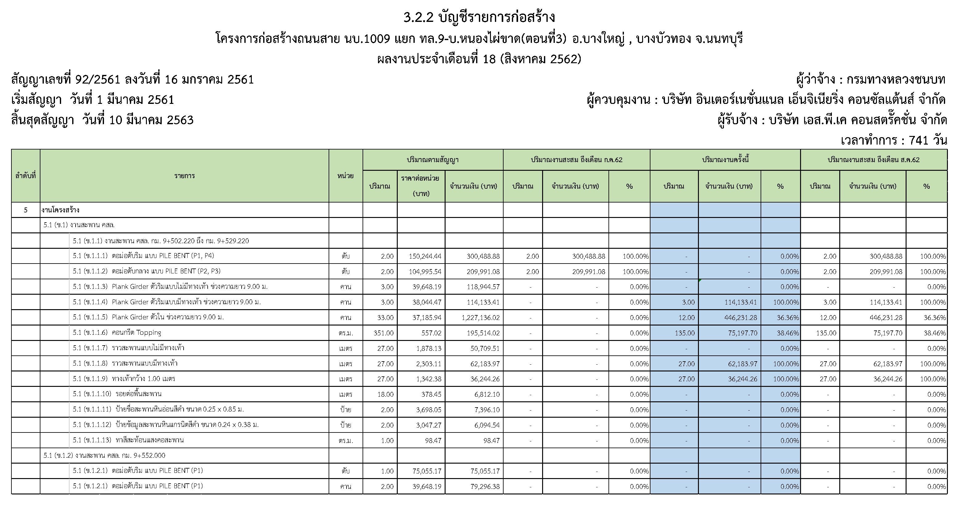 - ผลงานก่อสร้าง ช้า/เร็ว กว่าแผนงาน (-,+) : -0.18 %