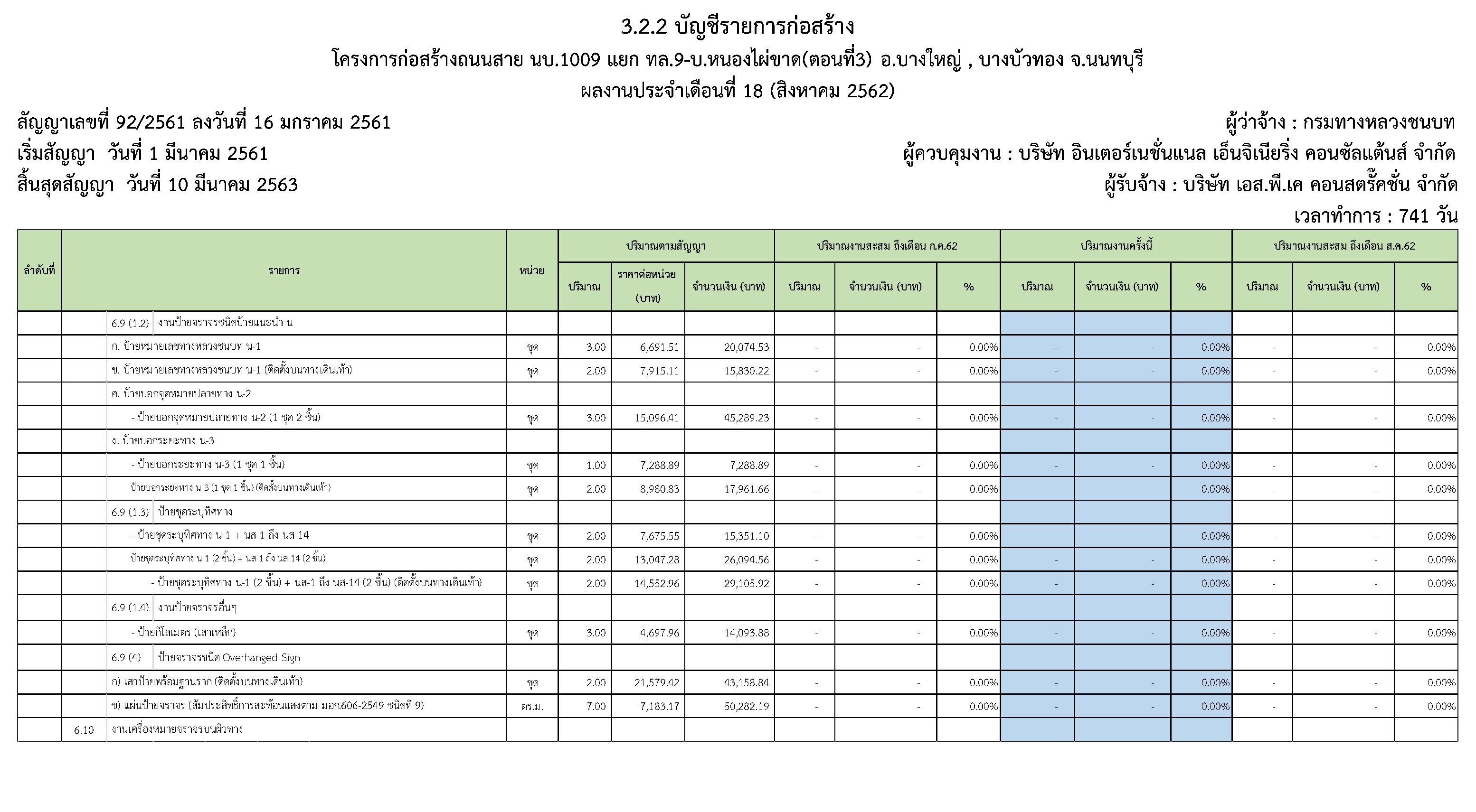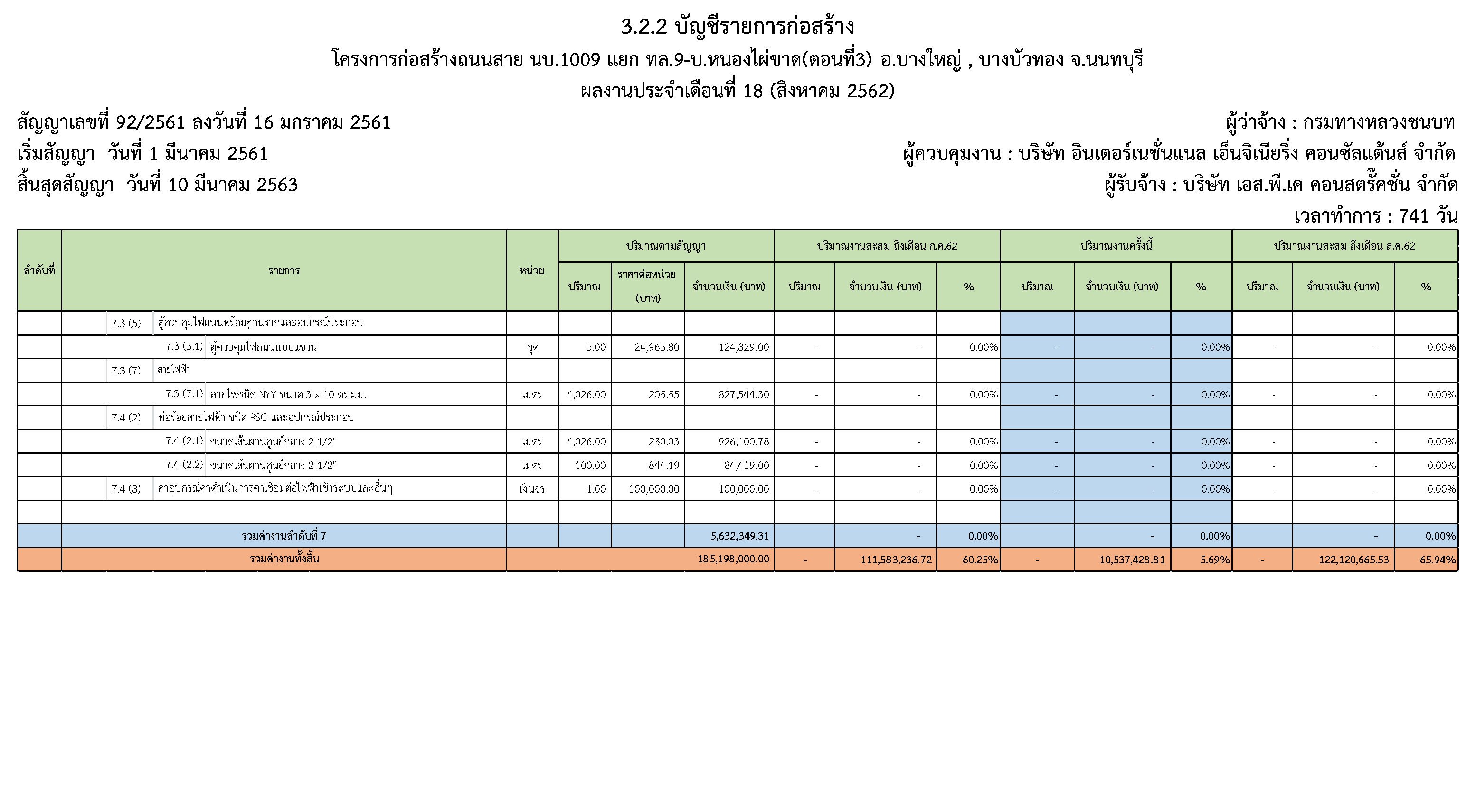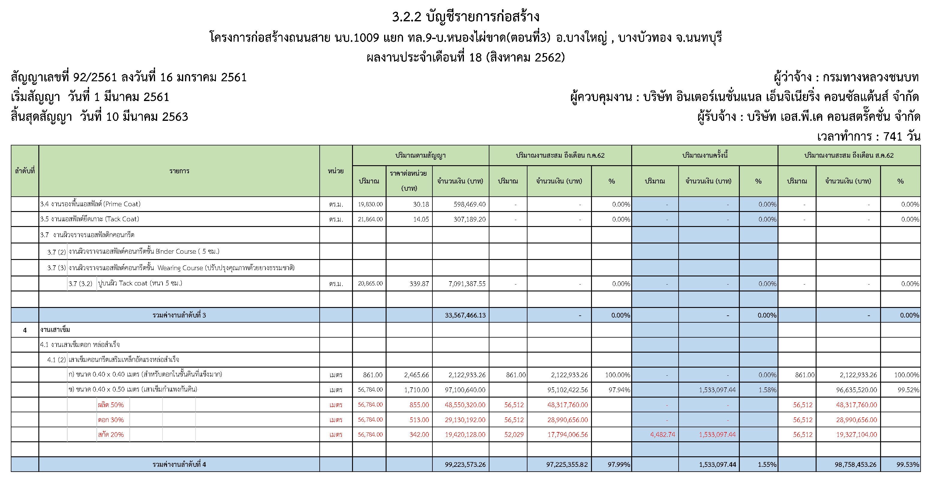 - ระยะเวลาก่อสร้างตามสัญญา : 741 วัน