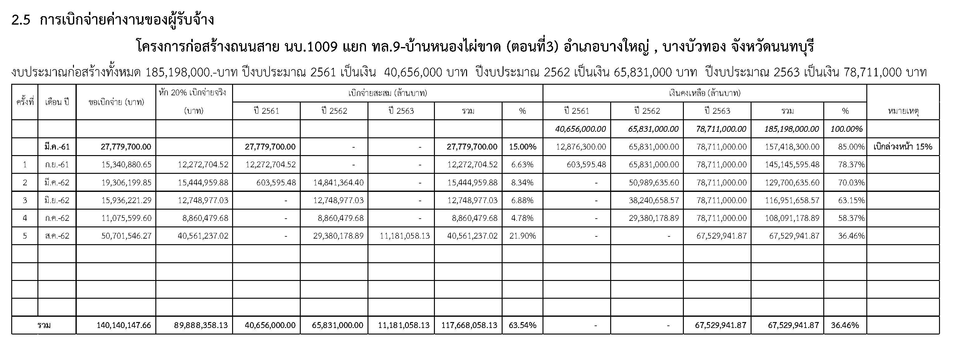 โครงการก่อสร้างถนนสายแยก ทล.9-บ้านหนองไผ่ขาด(ตอนที่3) อำเภอบางใหญ่ , บางบัวทอง จังหวัดนนทบุรีมีสถานภาพของสัญญาก่อสร้าง โดยมีรายละเอียดของสัญญาดังต่อไปนี้
