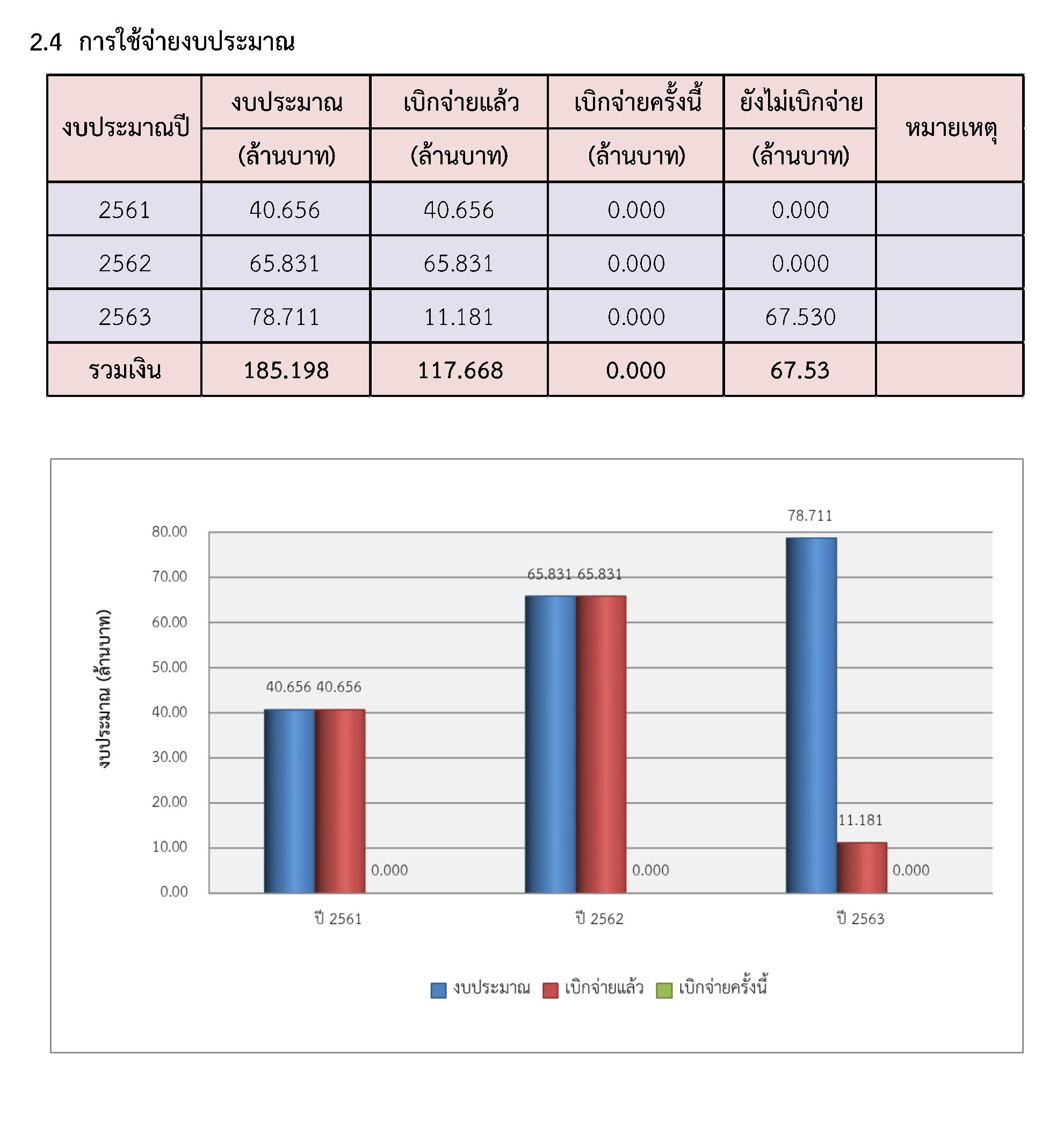 งบประมาณก่อสร้างทั้งหมด 185,198,000.-บาท ปีงบประมาณ 2561 เป็นเงิน 40,656,000 บาท ปีงบประมาณ 2562เป็นเงิน 65,831,000 บาทปีงบประมาณ 2563เป็นเงิน78,711,000 บาท