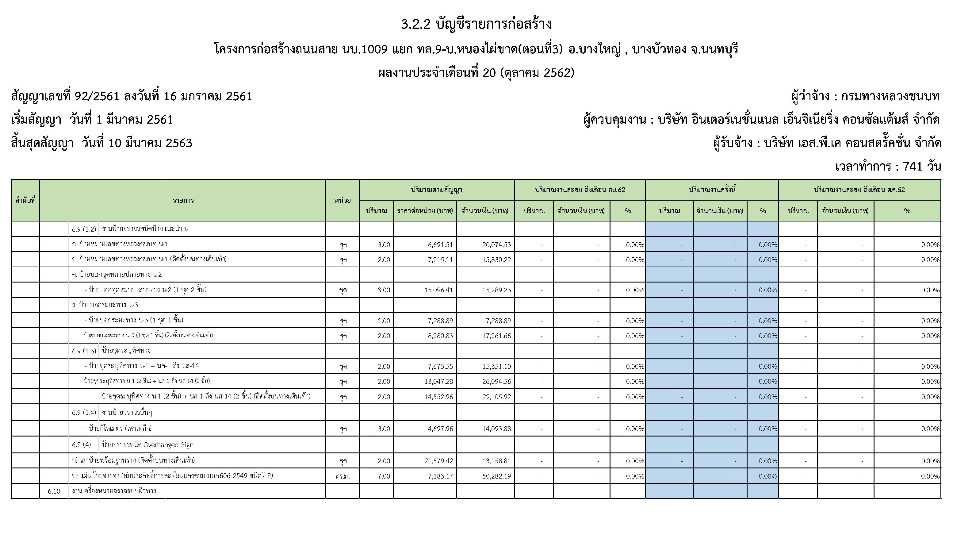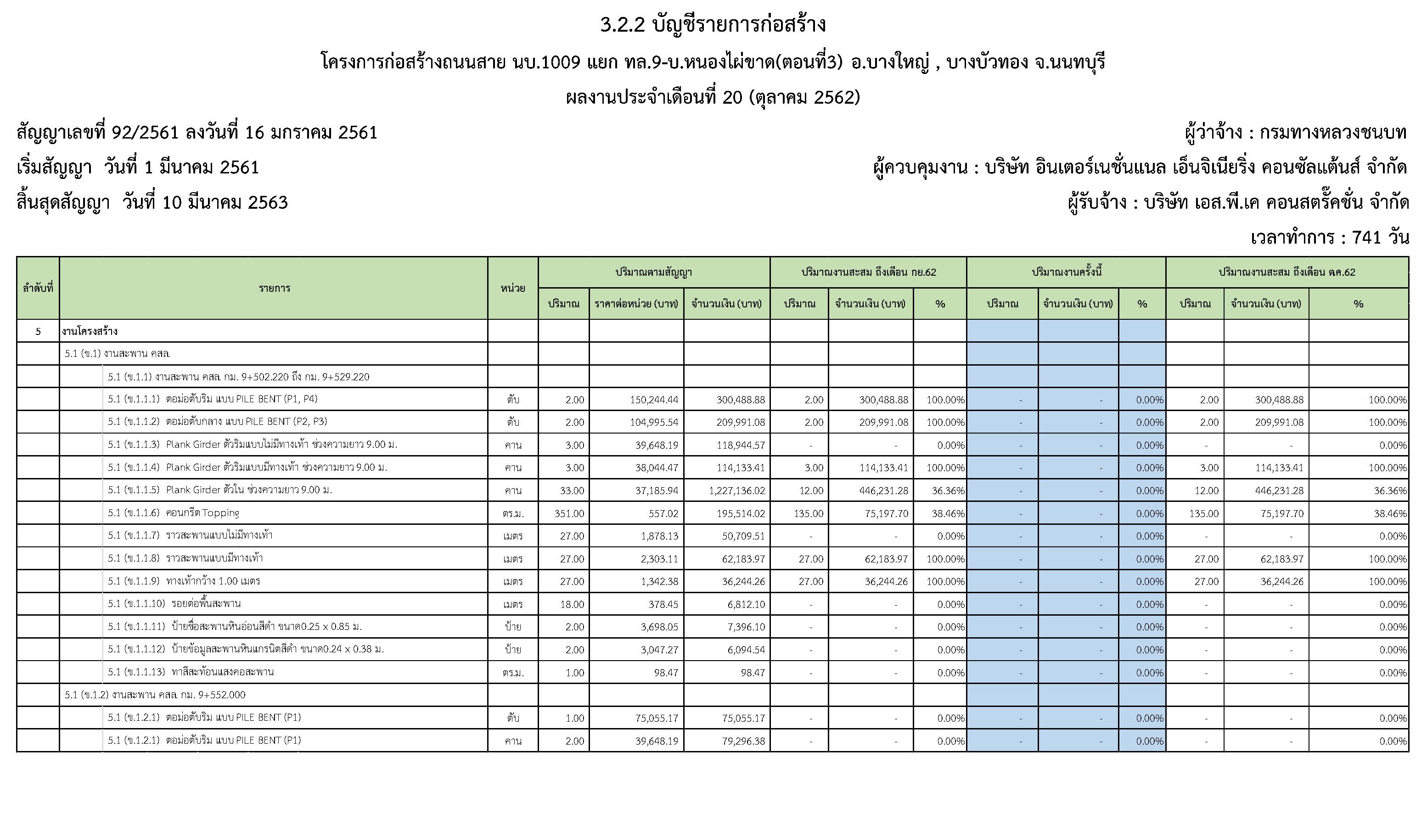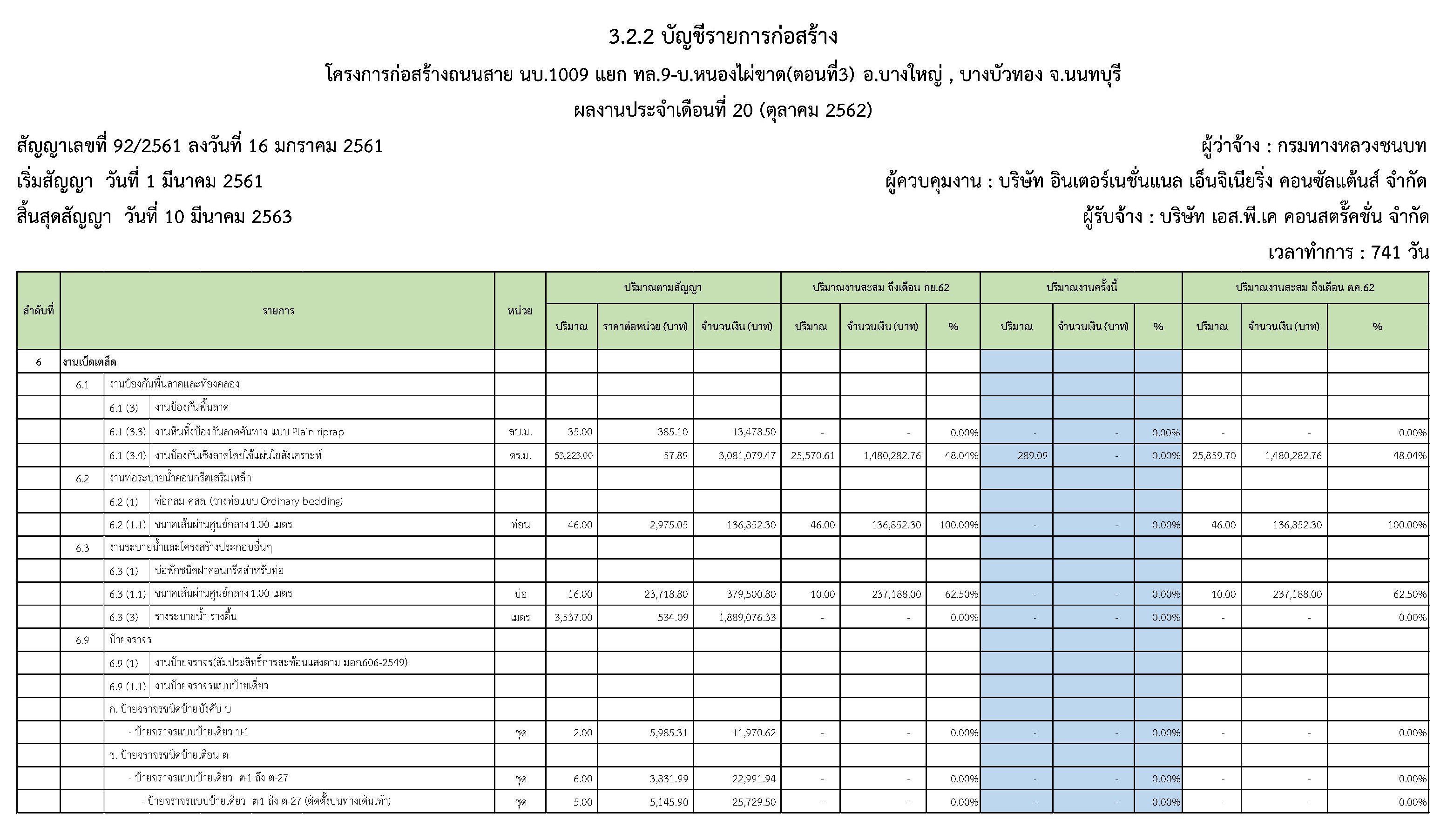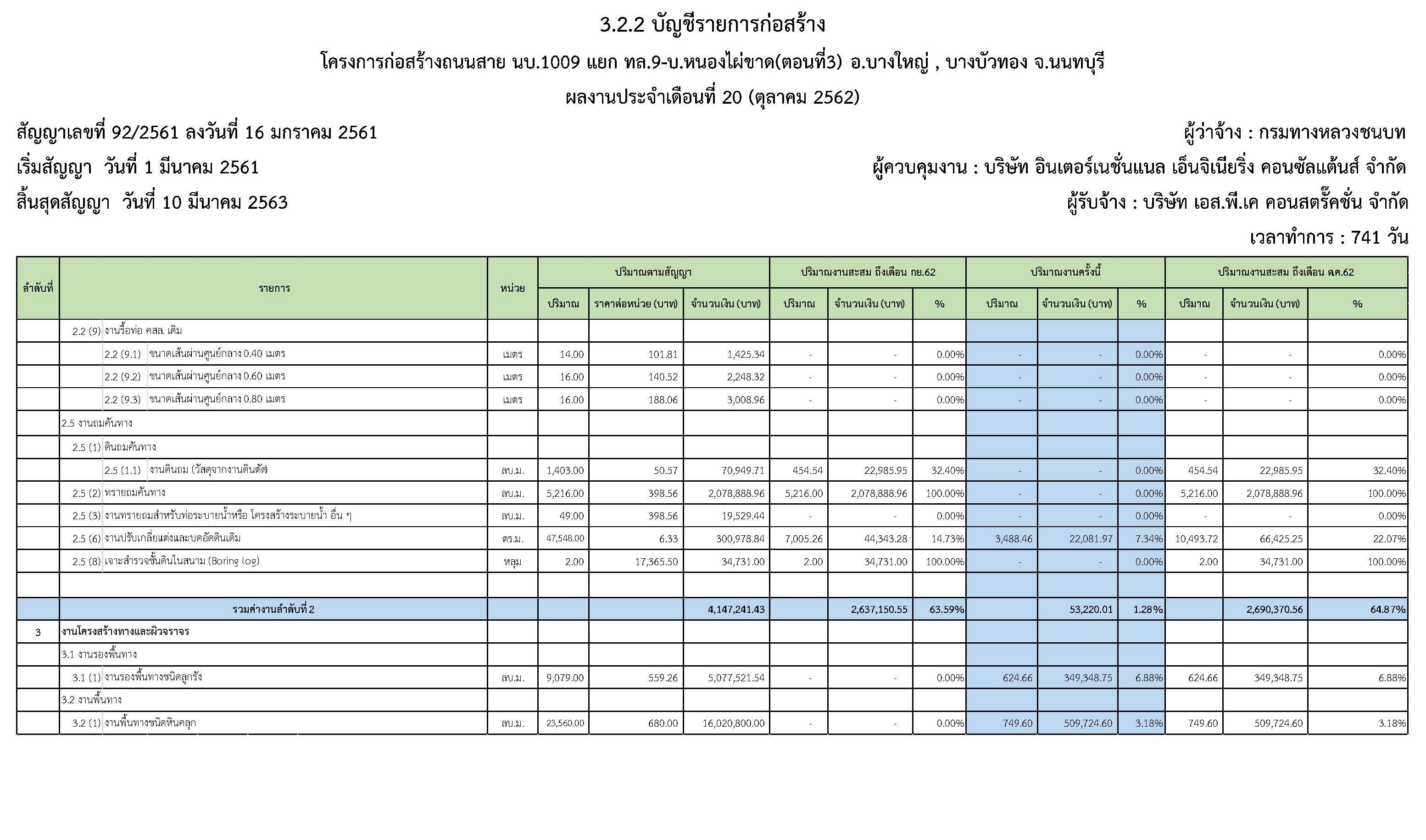 ในระหว่างวันที่1 ตุลาคม2562ถึงวันที่ 31ตุลาคม 2562ผู้รับจ้างได้ดำเนินงานในส่วนต่างๆดังนี้