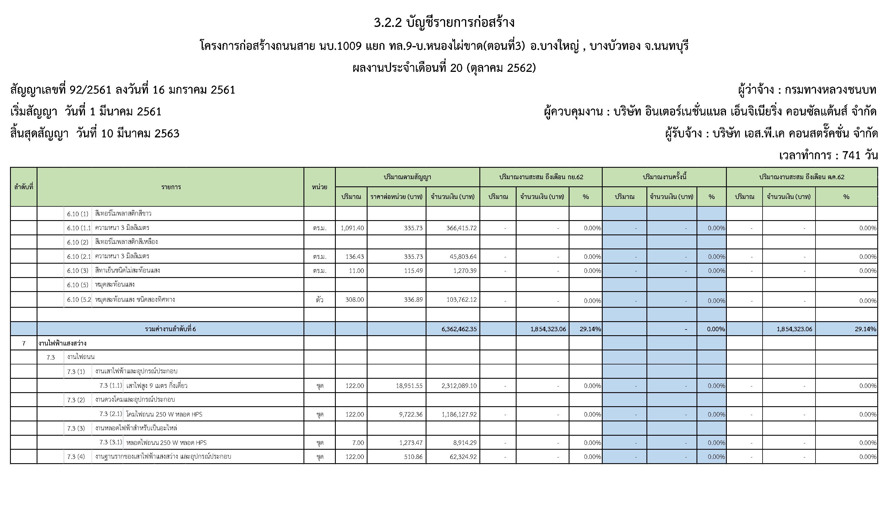 - แผนงานการก่อสร้าง : 7.09 %