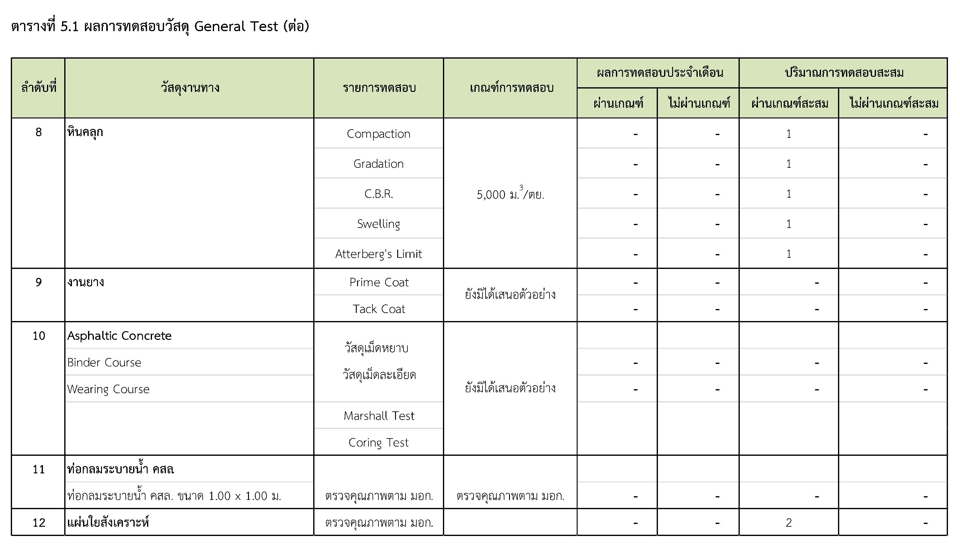 บทที่ 5 รายงานการปฏิบัติการของงานที่ปรึกษา