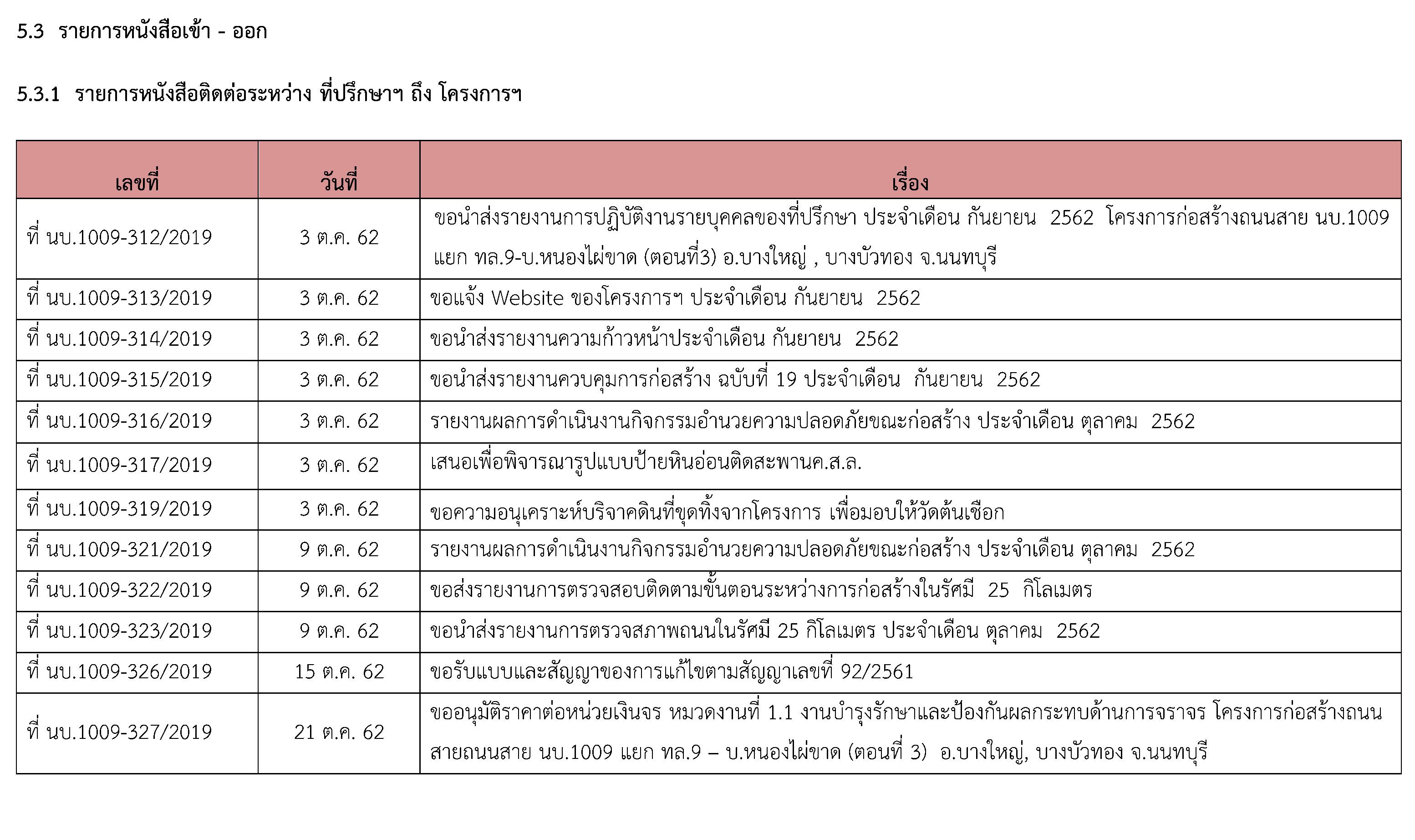 - จัดทำรายงานการควบคุมงานก่อสร้าง ประจำเดือนตุลาคม2562