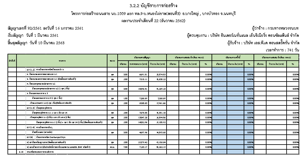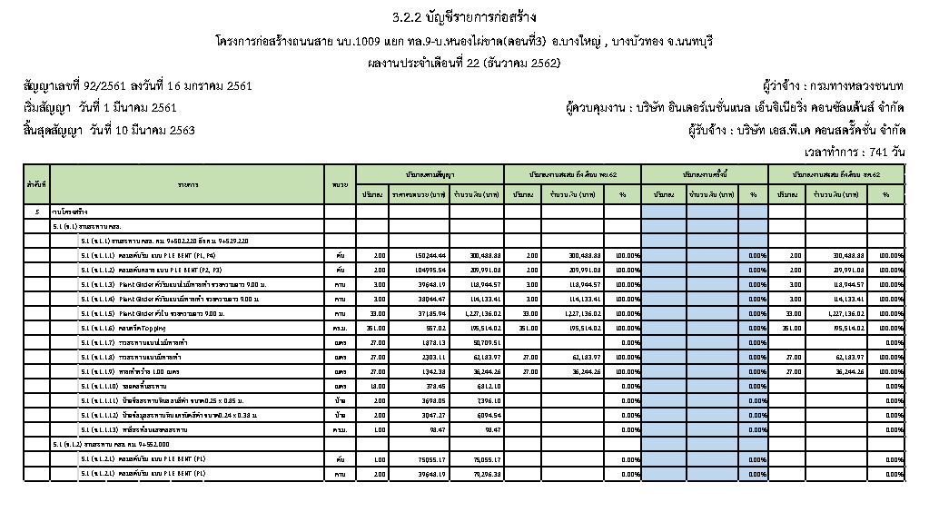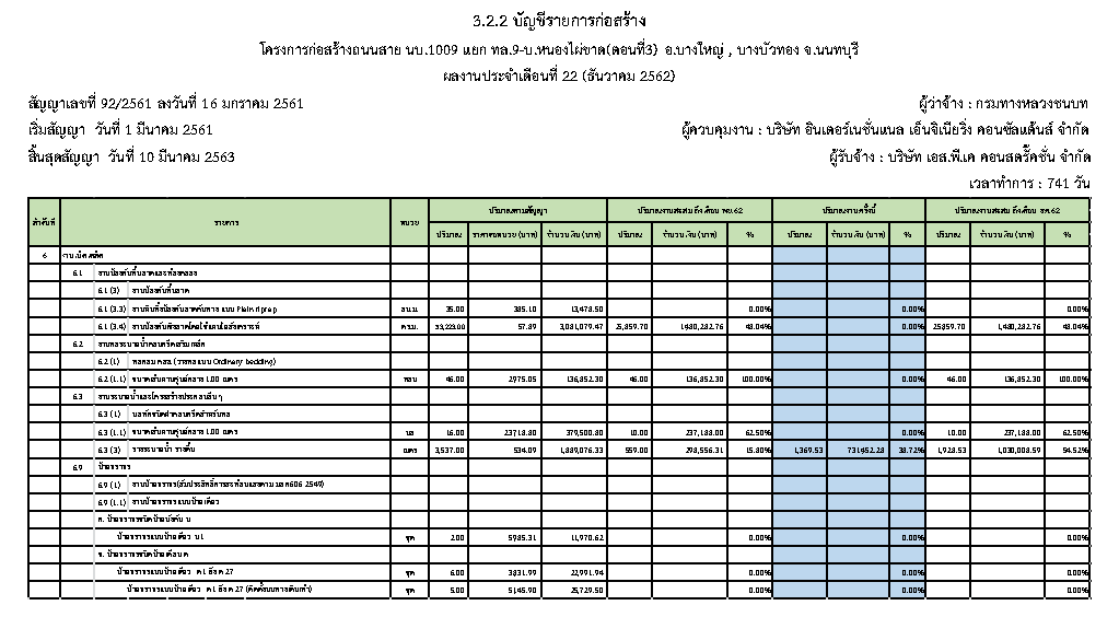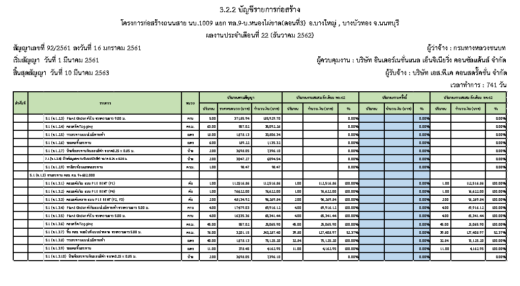 3.2.3ตารางแผนงาน/ผลงานก่อสร้างประจำเดือนธันวาคม 2562