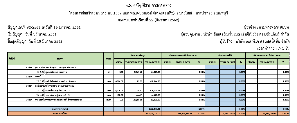 - ระยะเวลาก่อสร้างตามสัญญา : 741 วัน