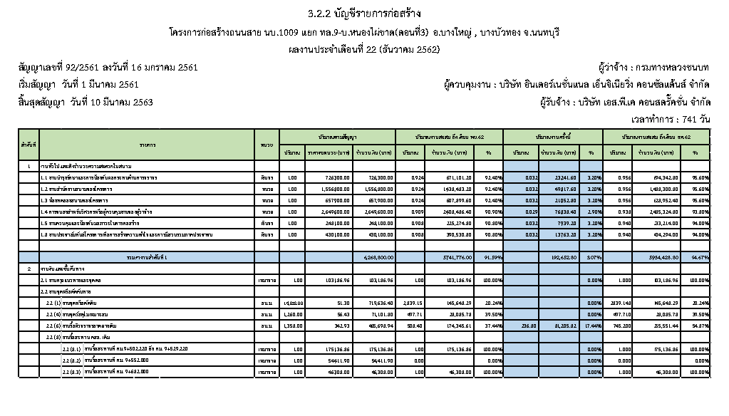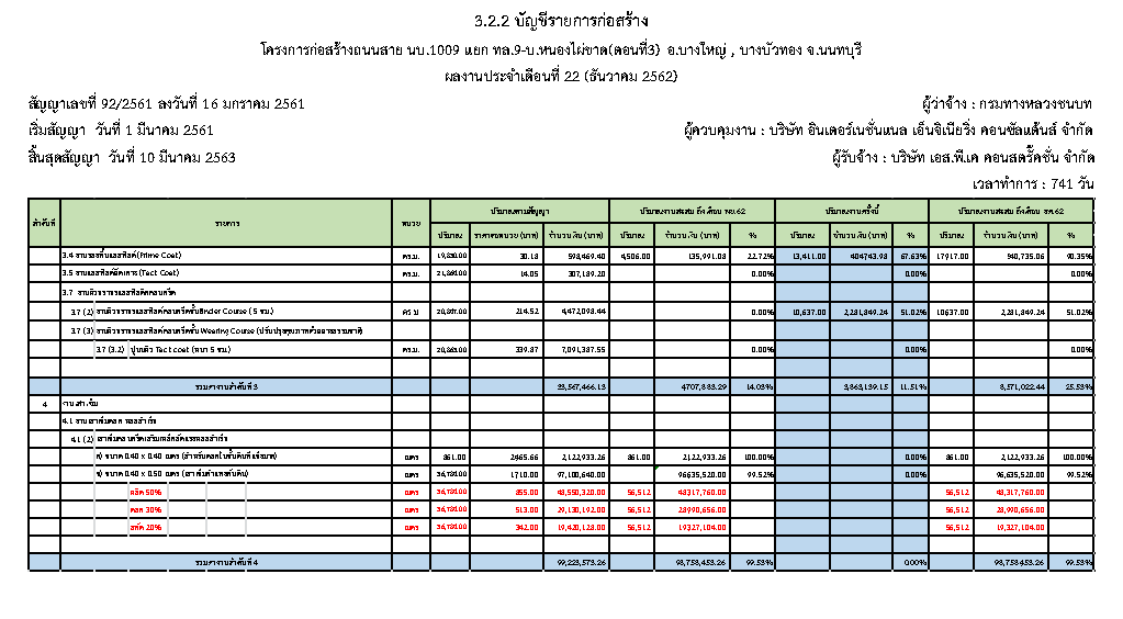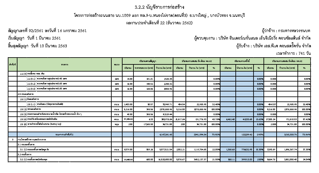 - แผนงานการก่อสร้าง : 2.57 %
