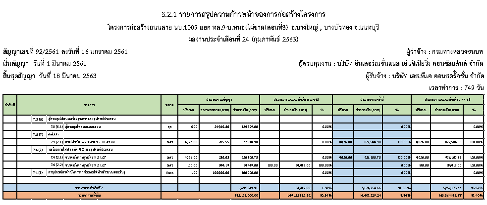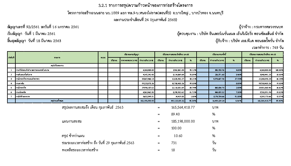 vความก้าวหน้าสะสมของโครงการ ตั้งแต่เริ่มสัญญา จนถึงวันที่ 29 ก.พ. 2563