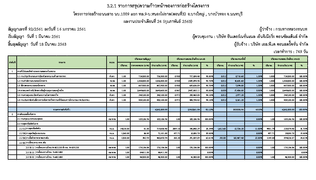 ในระหว่างวันที่1 กุมภาพันธ์2563ถึงวันที่ 29 กุมภาพันธ์2563ผู้รับจ้างได้ดำเนินงานในส่วนต่างๆดังนี้