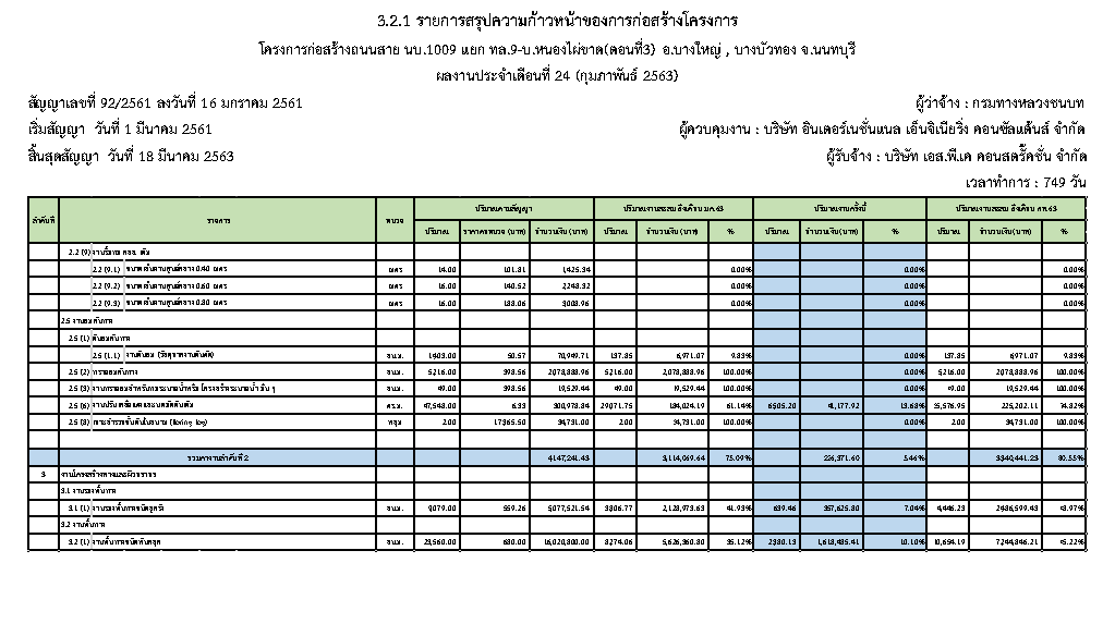 - ระยะเวลาก่อสร้างตามสัญญา : 749 วัน