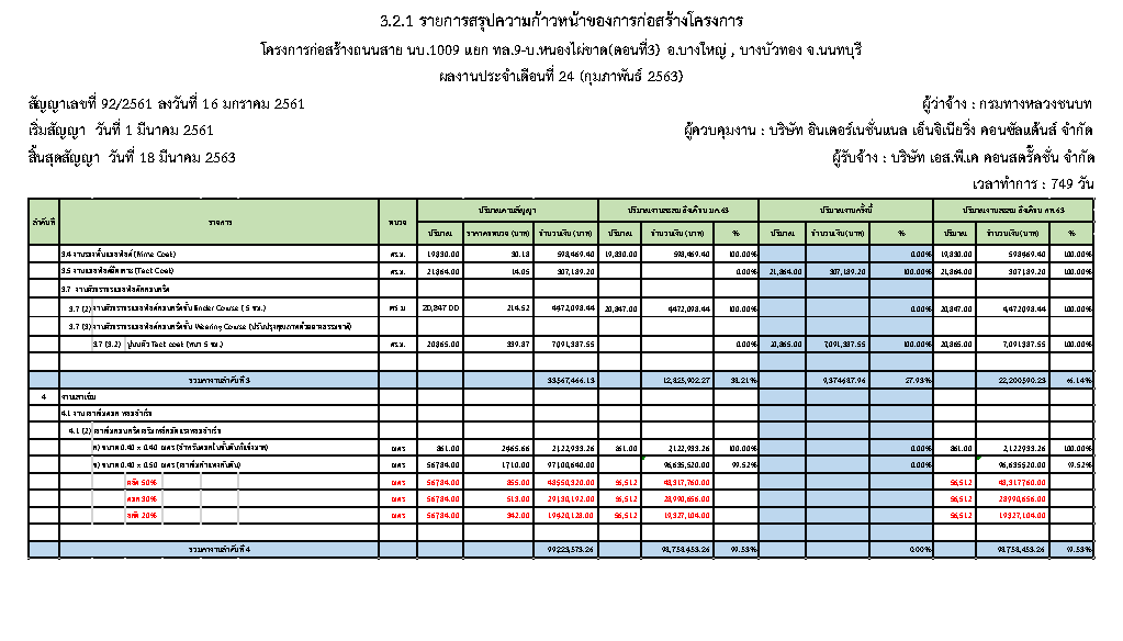 - คงเหลือระยะเวลาดำเนินการก่อสร้าง : 18 วัน