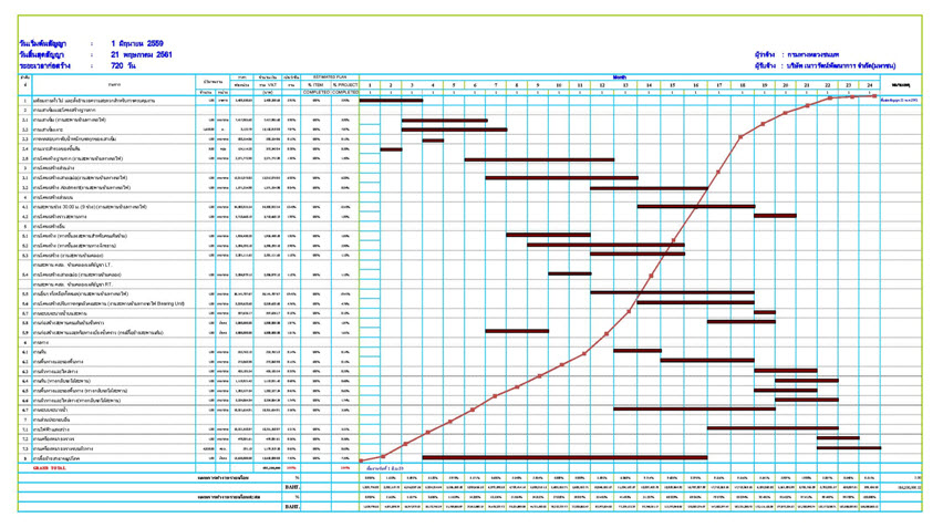 เนื่องจากในช่วงเดือนที่ 2 ของโครงการ ผู้รับจ้างได้เข้าทำการปรับระดับดินหน้างานในบางส่วน แต่ยังไม่สามารถเข้าพื้นที่ได้บางส่วน และได้จัดทำแผนงานของกิจกรรมก่อสร้างต่างๆ ในกรอบเวลาของสัญญา ให้ทางที่ปรึกษาพิจารณา ดังรูปที่ 2.2-1