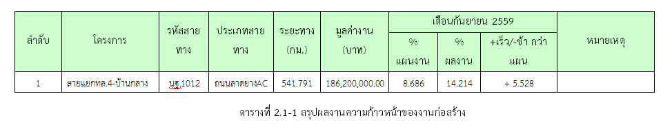 ในช่วงเดือนกันยายน 2559 ที่ผ่านมาผู้รับจ้างดำเนินงานต่างๆ ที่มีรายละเอียดของงานหลักๆดังนี้ (ต่อ)