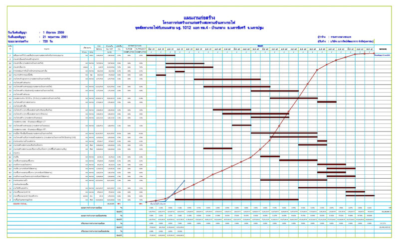 ที่ปรึกษาได้ติดตามความก้าวหน้าของงาน และนำมาจัดทำเป็น S-CURVE เปรียบเทียบกันระหว่างแผนงานและผลงานก่อสร้าง ดังรูปที่ 2.2-1
