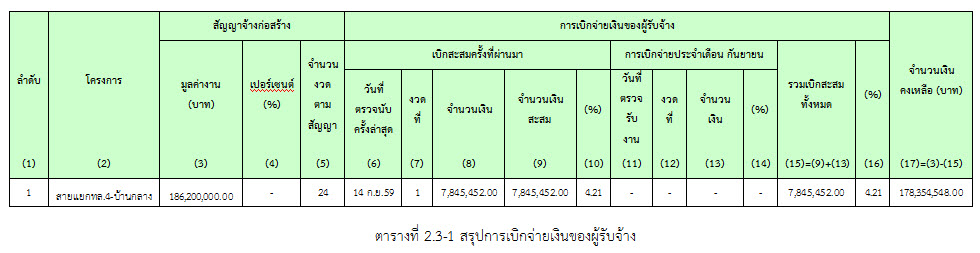 คณะกรรมการตรวจการจ้าง ดำเนินการตรวจรับงานในเดือน กันยายน 2559 ดังสรุปในตารางที่ 2.3-1 สรุปการเบิกจ่ายเงินของผู้รับจ้าง