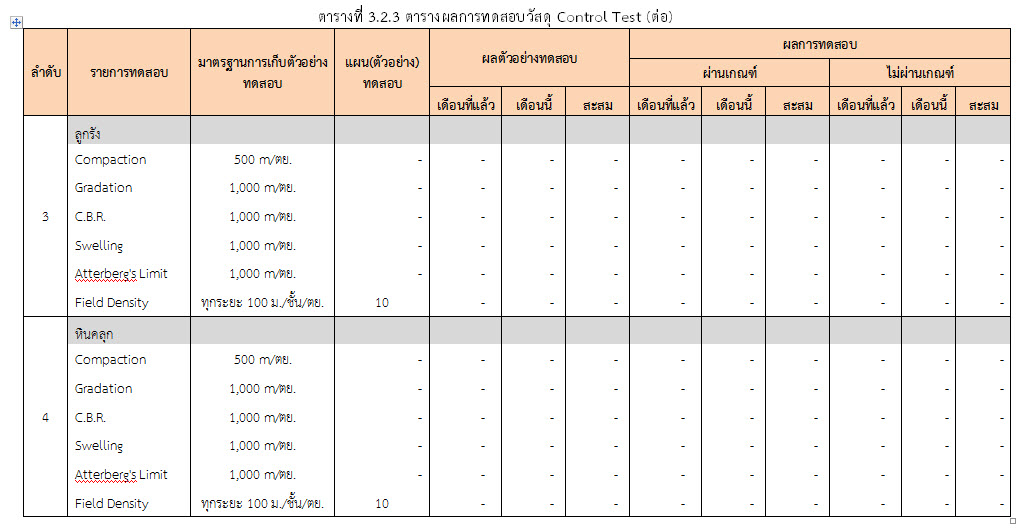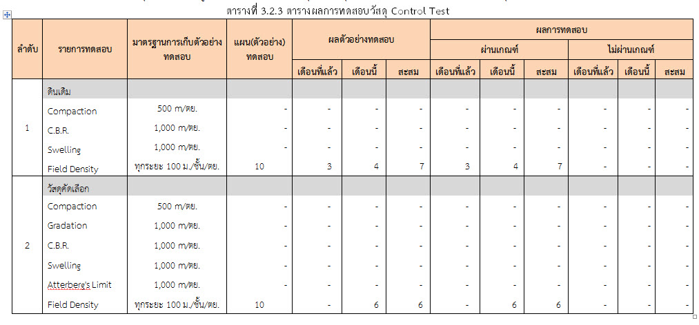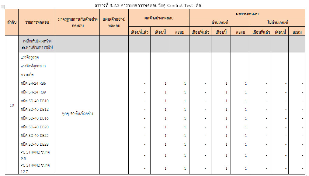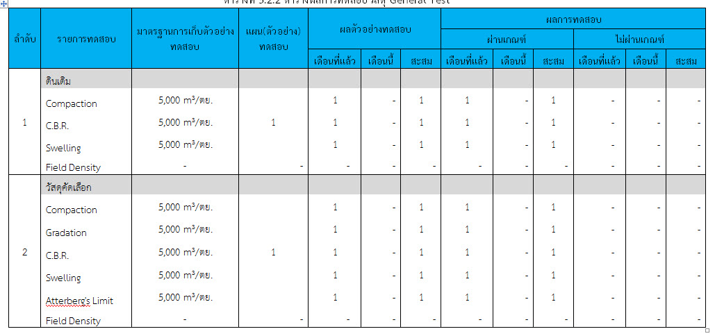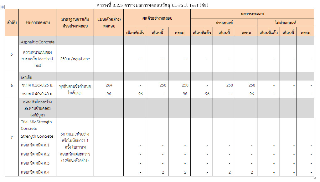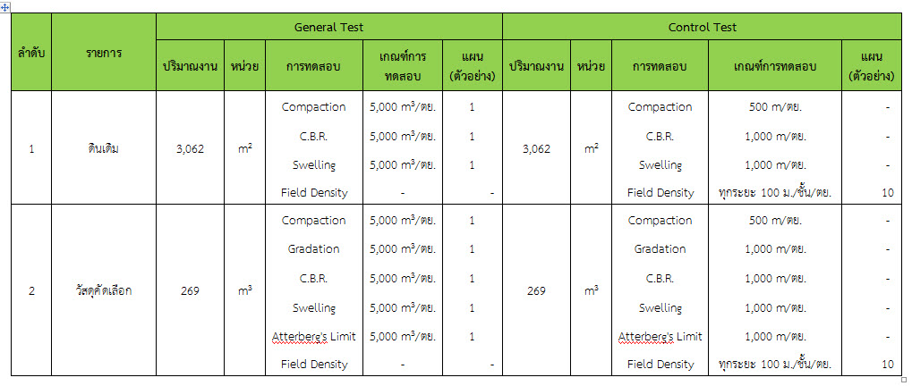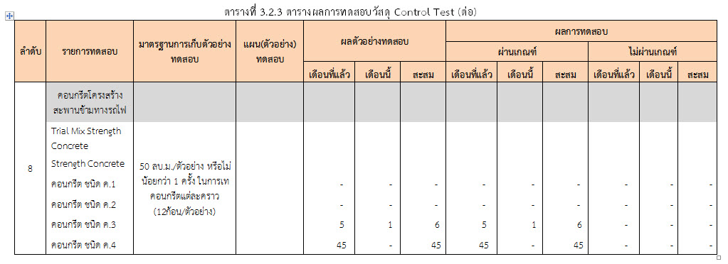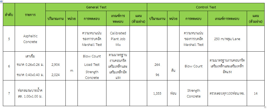 ในระหว่างวันที่ 1-31 ตุลาคม ๒๕๕๙ ผู้ว่าจ้างได้เสนอหนังสือขออนุมัติใช้วัสดุถึงที่ปรึกษา โดยที่ปรึกษาได้ตรวจสอบวัสดุดังกล่าวมีผลทดสอบดังตาราง