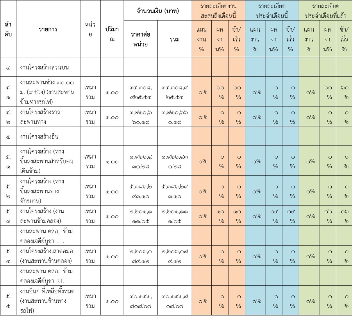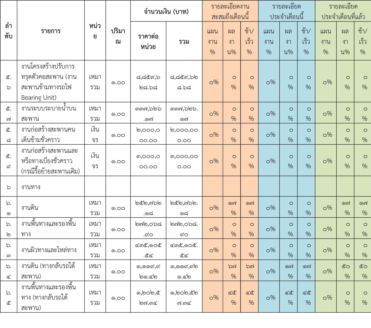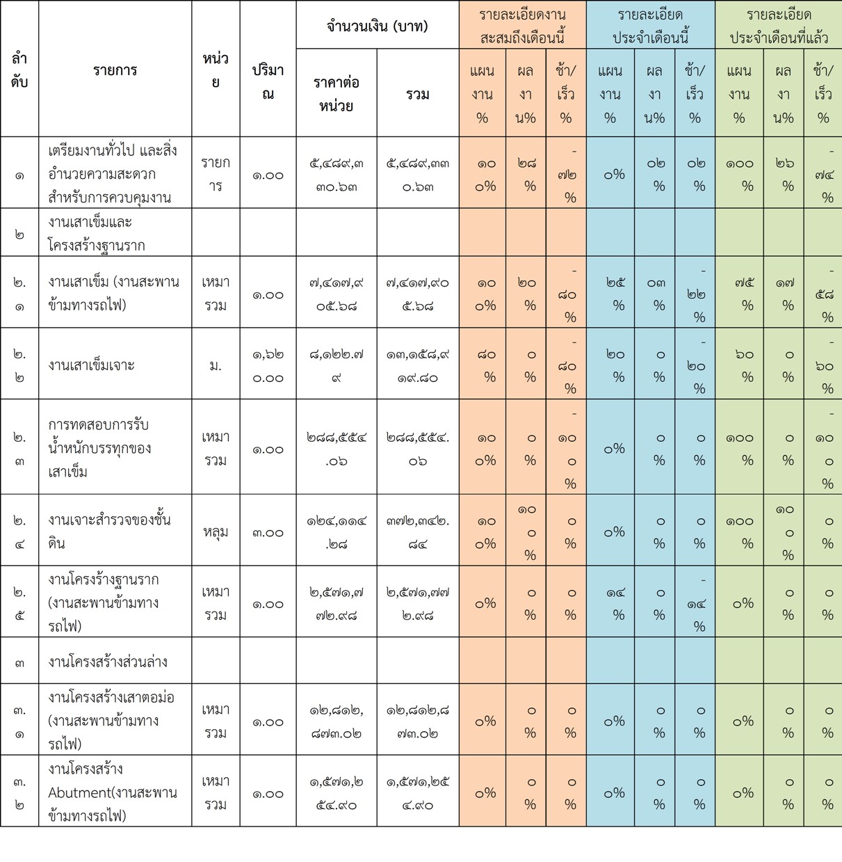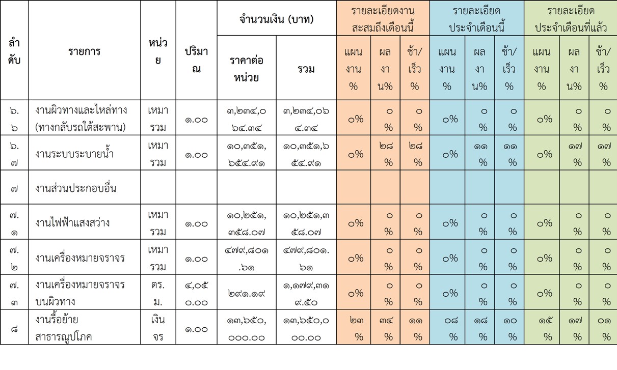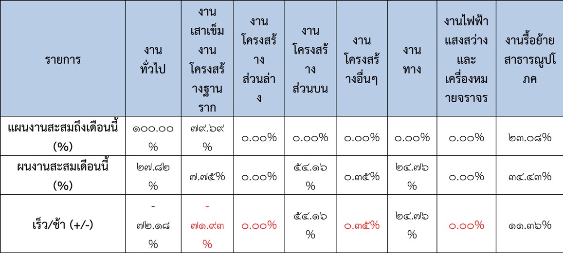 2.2 ความก้าวหน้าของงานก่อสร้างแยกตามรายการ