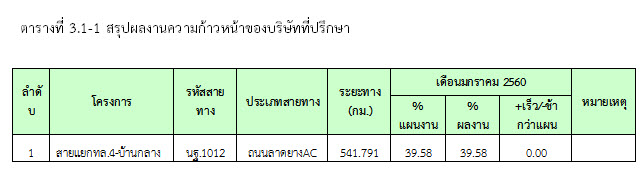 ตารางที่ 3.1-1 สรุปผลงานความก้าวหน้าของบริษัทที่ปรึกษา