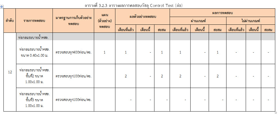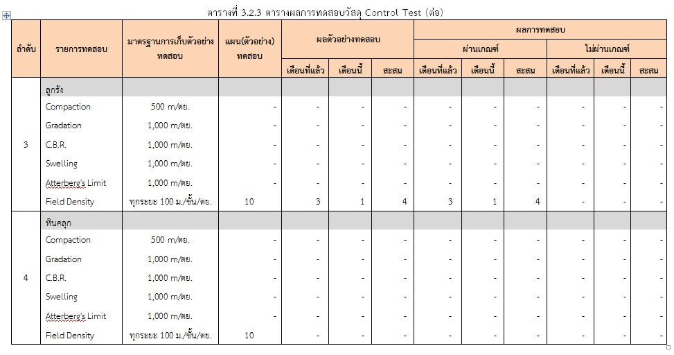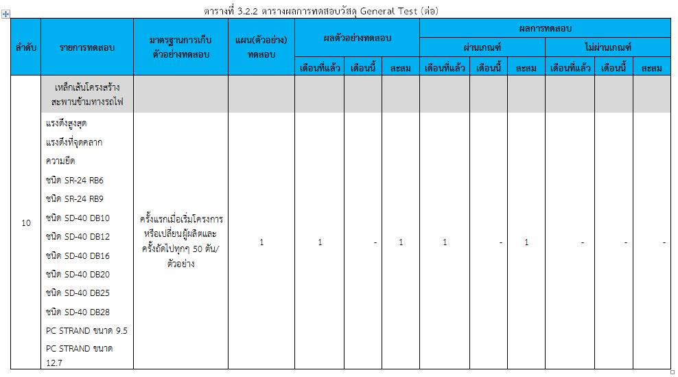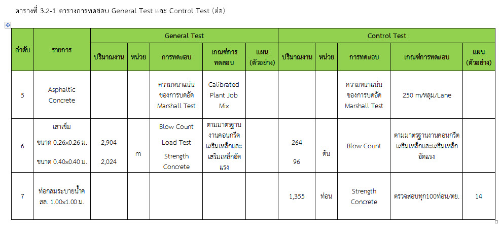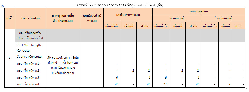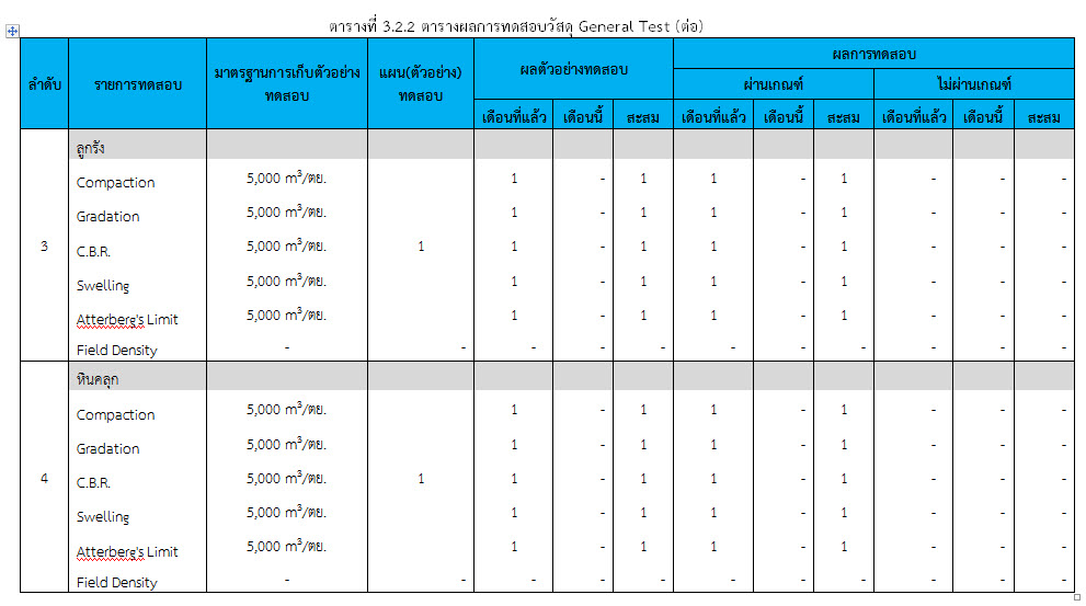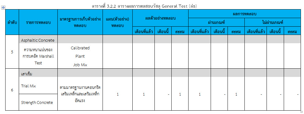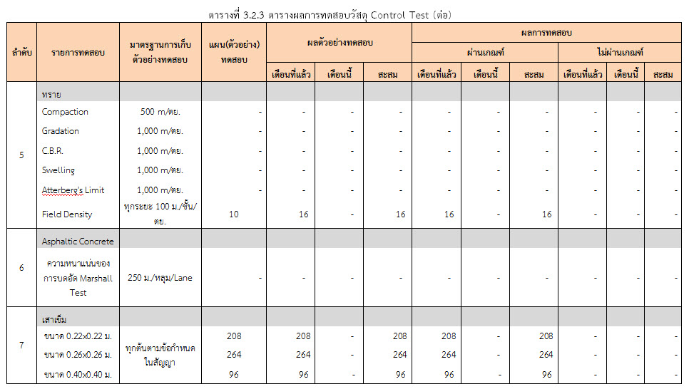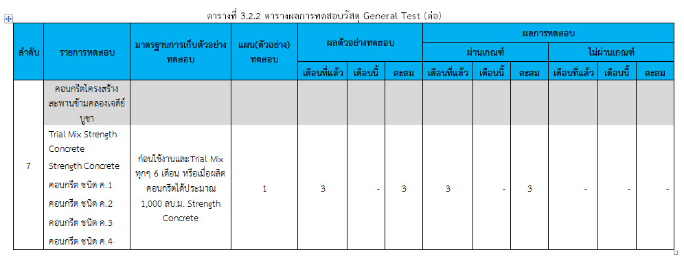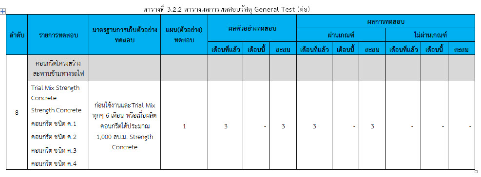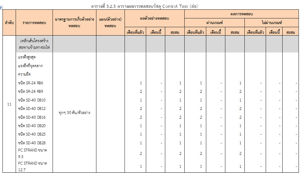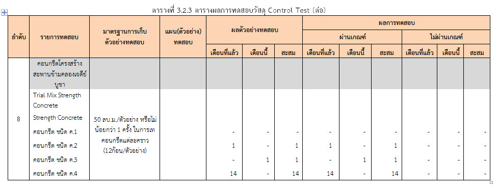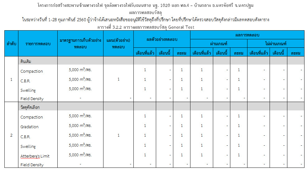 ในระหว่างวันที่ 1-28 กุมภาพันธ์ 2560 ผู้ว่าจ้างได้เสนอหนังสือขออนุมัติใช้วัสดุถึงที่ปรึกษา โดยที่ปรึกษาได้ตรวจสอบวัสดุดังกล่าวมีผลทดสอบดังตาราง