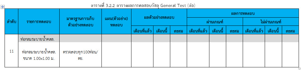 ตารางที่ 3.2.2 ตารางผลการทดสอบวัสดุ General Test (ต่อ)