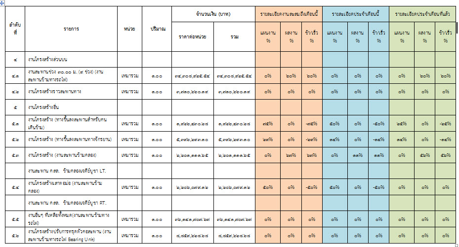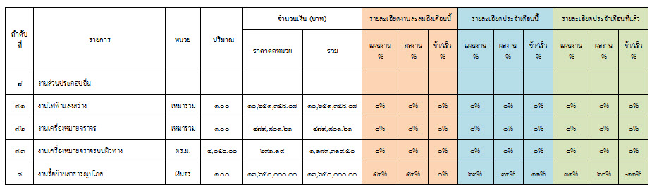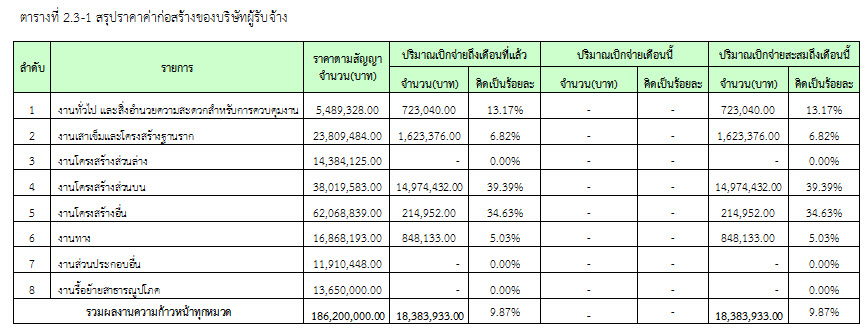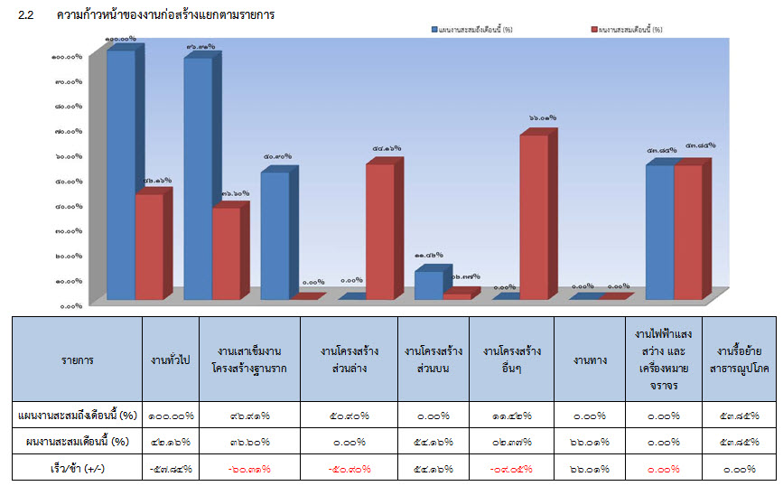 2.2 ความก้าวหน้าของงานก่อสร้างแยกตามรายการ