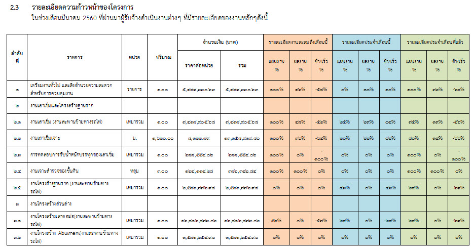 ในช่วงเดือนมีนาคม 2560 ที่ผ่านมาผู้รับจ้างดำเนินงานต่างๆ ที่มีรายละเอียดของงานหลักๆดังนี้