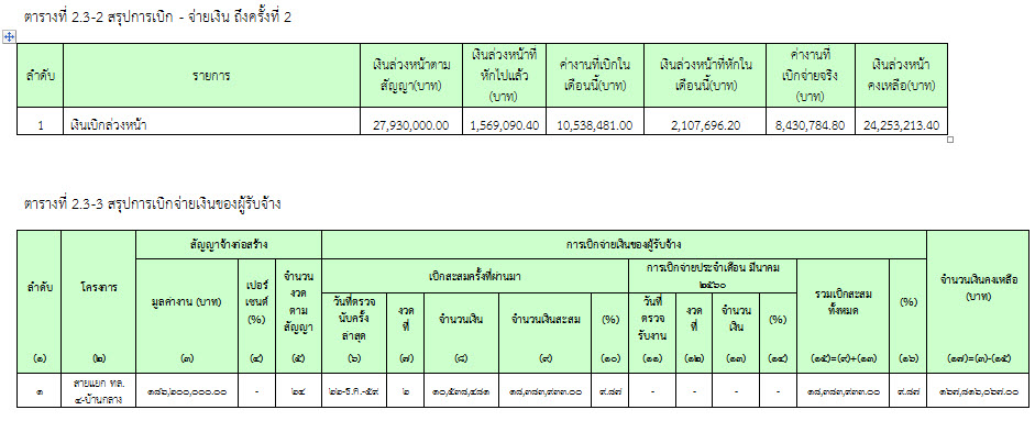 2.5 สรุปการเบิกจ่ายเงินของผู้รับจ้าง