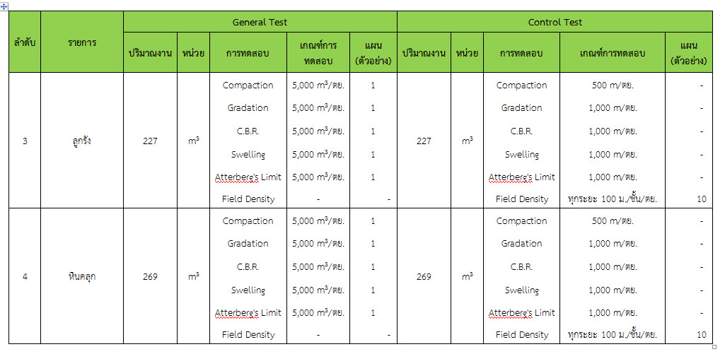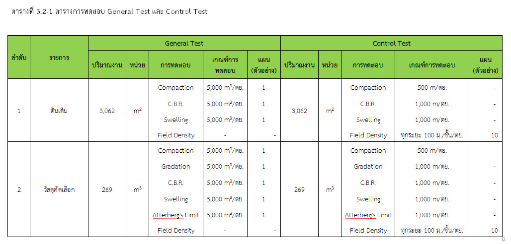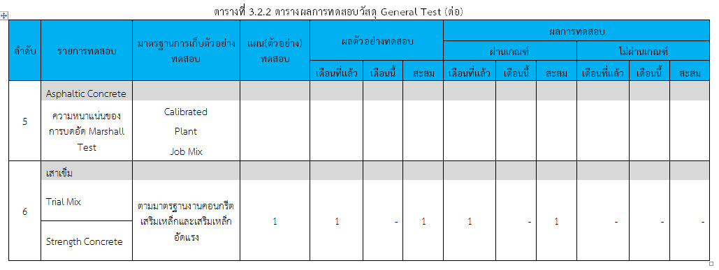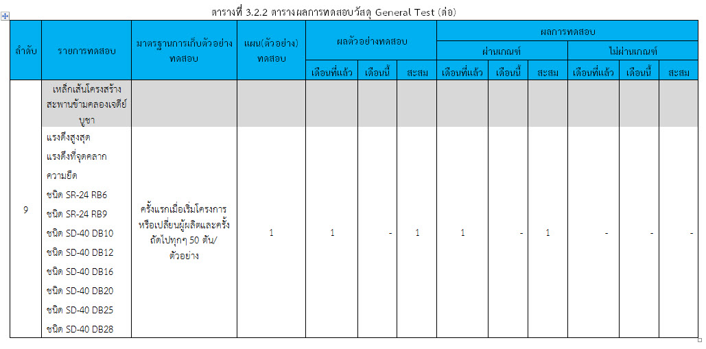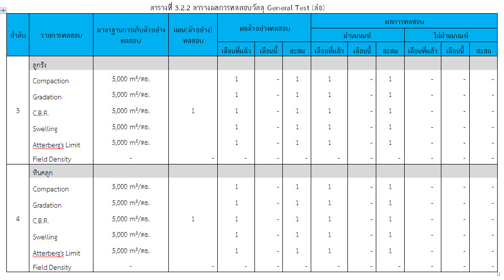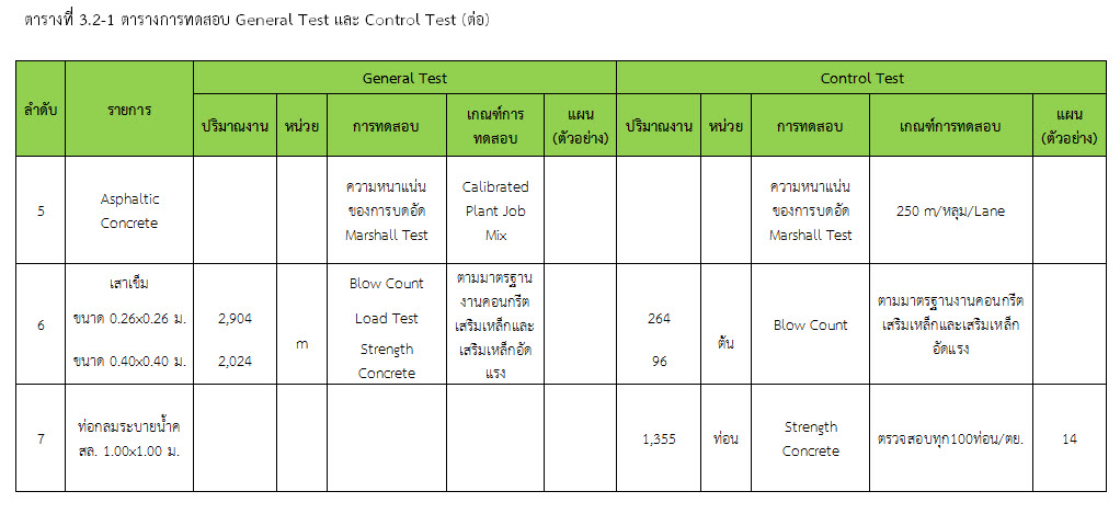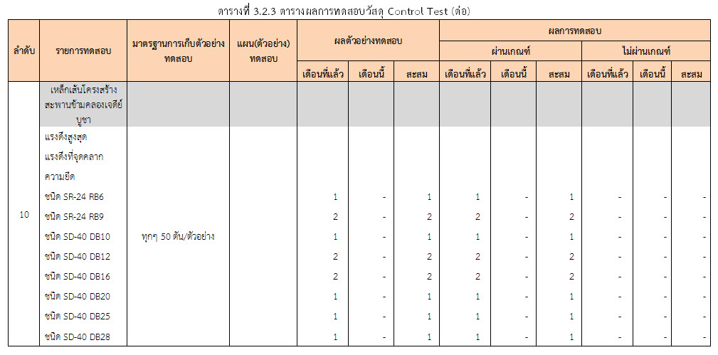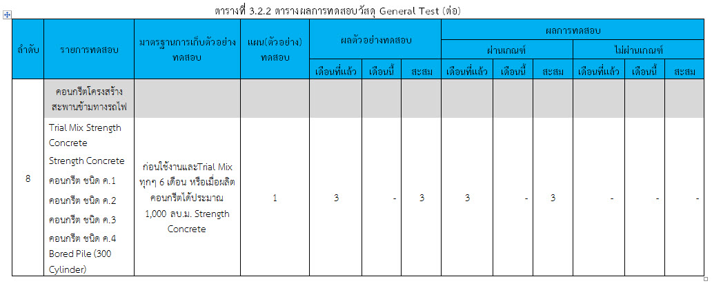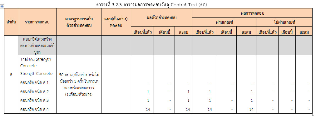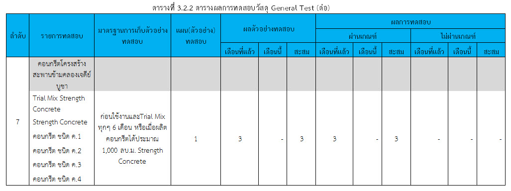 ในระหว่างวันที่ 1-31 มีนาคม 2560 ผู้ว่าจ้างได้เสนอหนังสือขออนุมัติใช้วัสดุถึงที่ปรึกษา โดยที่ปรึกษาได้ตรวจสอบวัสดุดังกล่าวมีผลทดสอบดังตาราง