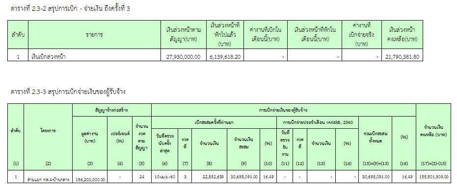 2.5 สรุปการเบิกจ่ายเงินของผู้รับจ้าง