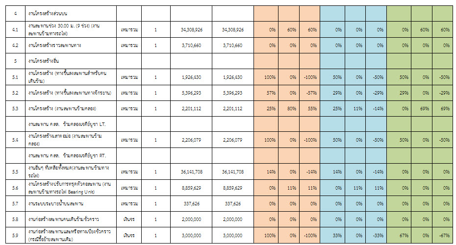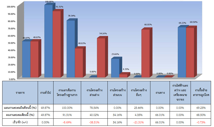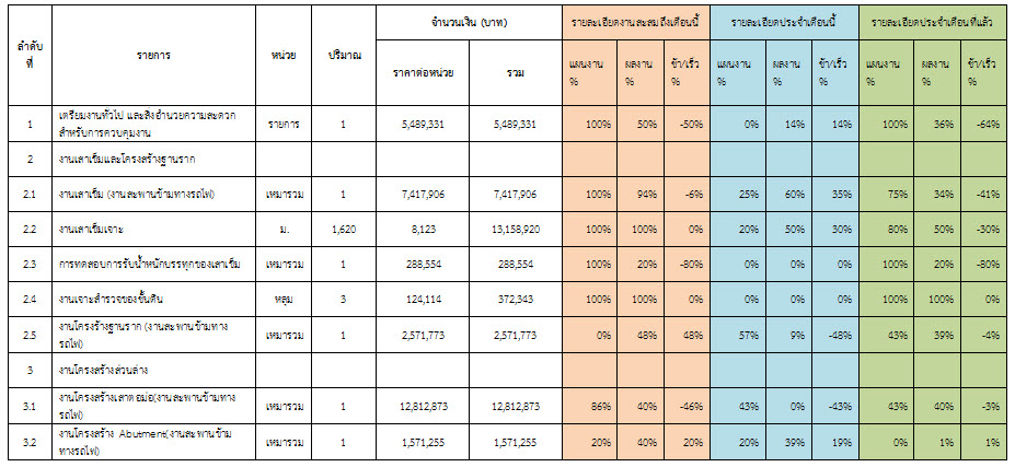 ตารางที่ 2.1-1 สรุปผลงานความก้าวหน้าของงานก่อสร้าง